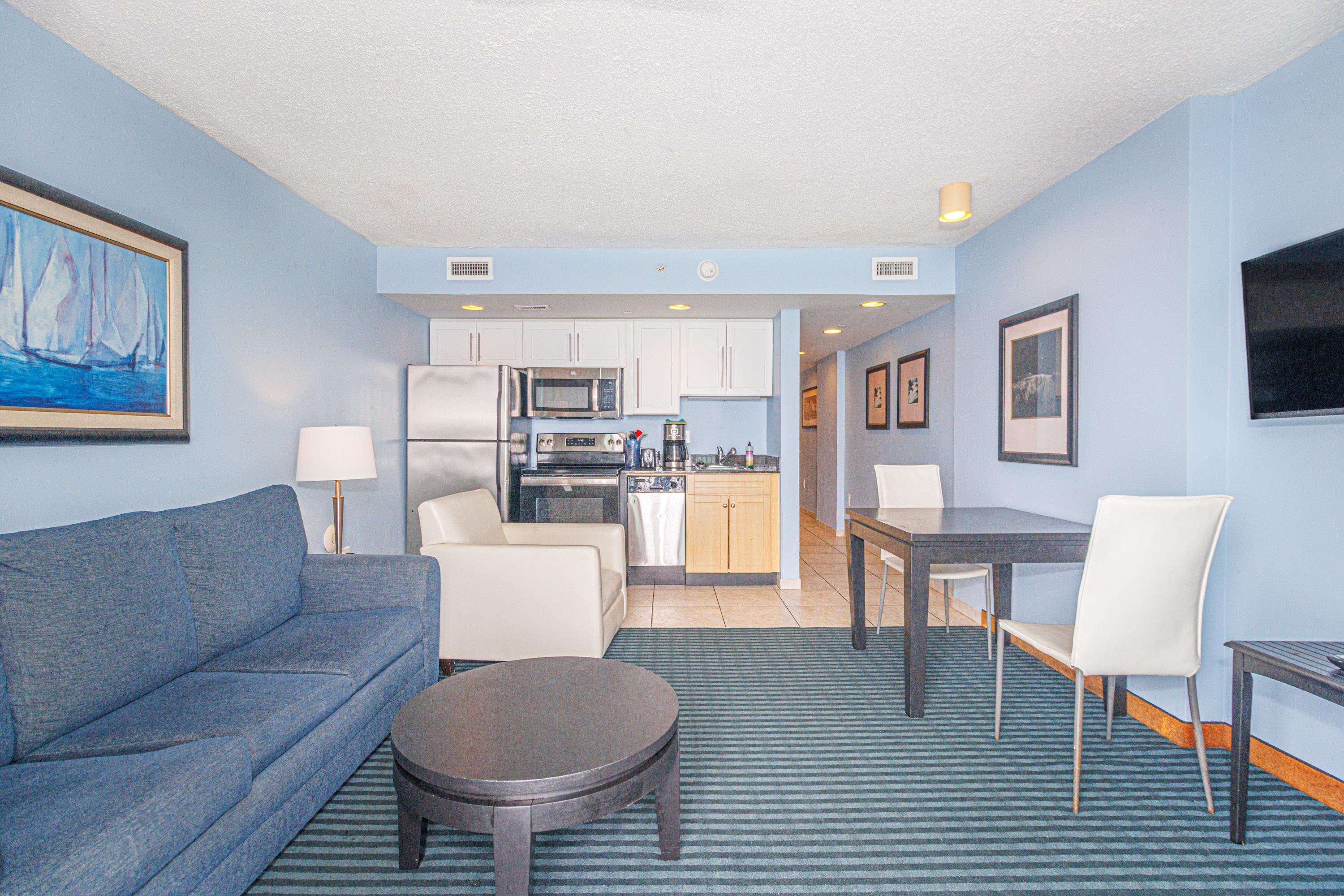 Highly desirable true, direct oceanfront 1BR in the modern Oceans One Resort. This popular layout features a private bedroom, full kitchen, and an open living area that opens to a spacious oceanfront balcony with stunning views. Interior highlights include granite countertops in both the kitchen and bath, stainless steel appliances, a tiled shower, and--rare for a 1BR--a private washer and dryer. Oceans One is a beautifully designed oceanfront resort with sleek glass accents, interior corridors, and an excellent mix of indoor and outdoor pools and water amenities. Perfectly located just steps from the 2nd Ave Pier and the start of the Myrtle Beach Boardwalk. An excellent option as a primary residence, second home, or vacation rental--ready to capitalize on strong spring and summer income.
