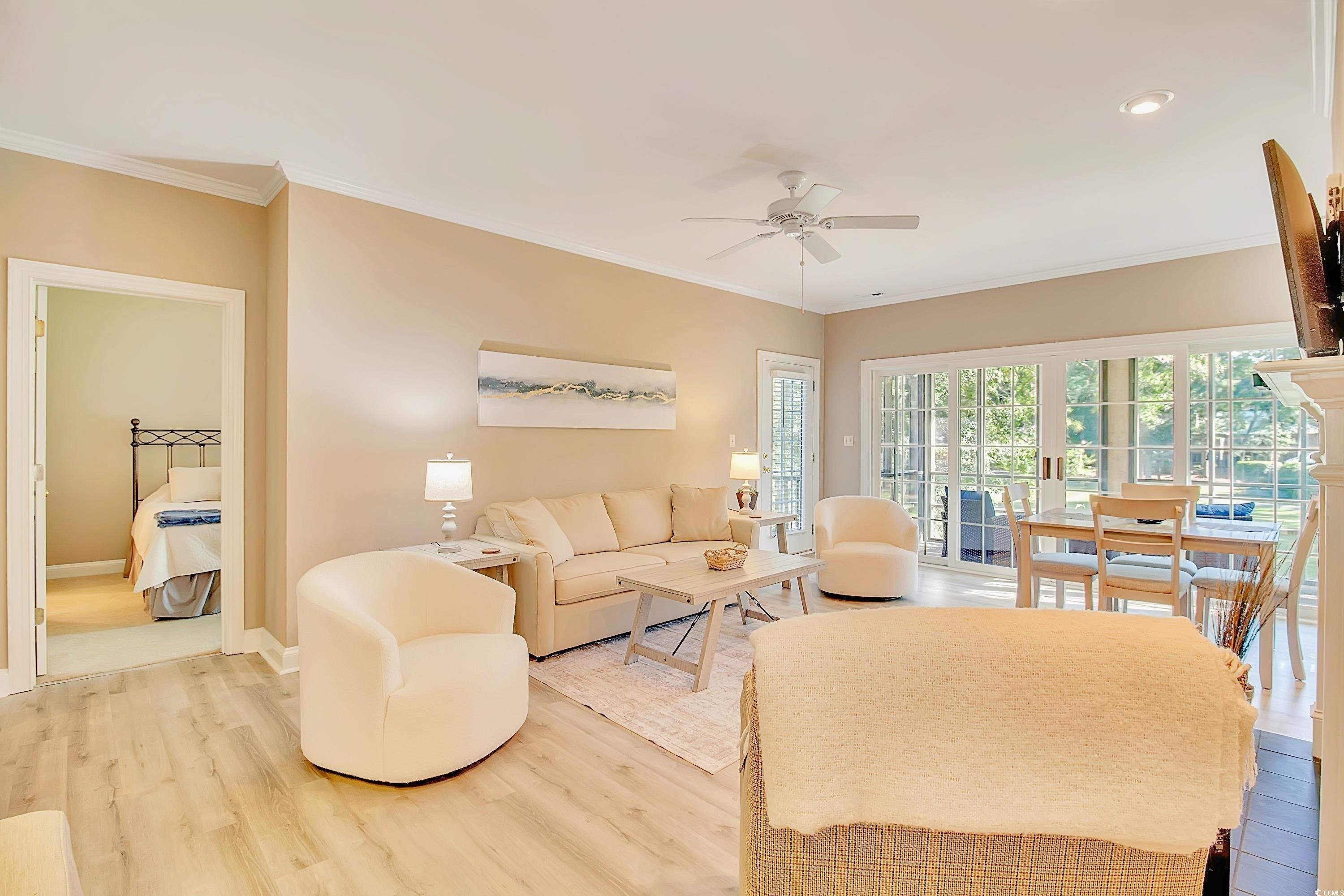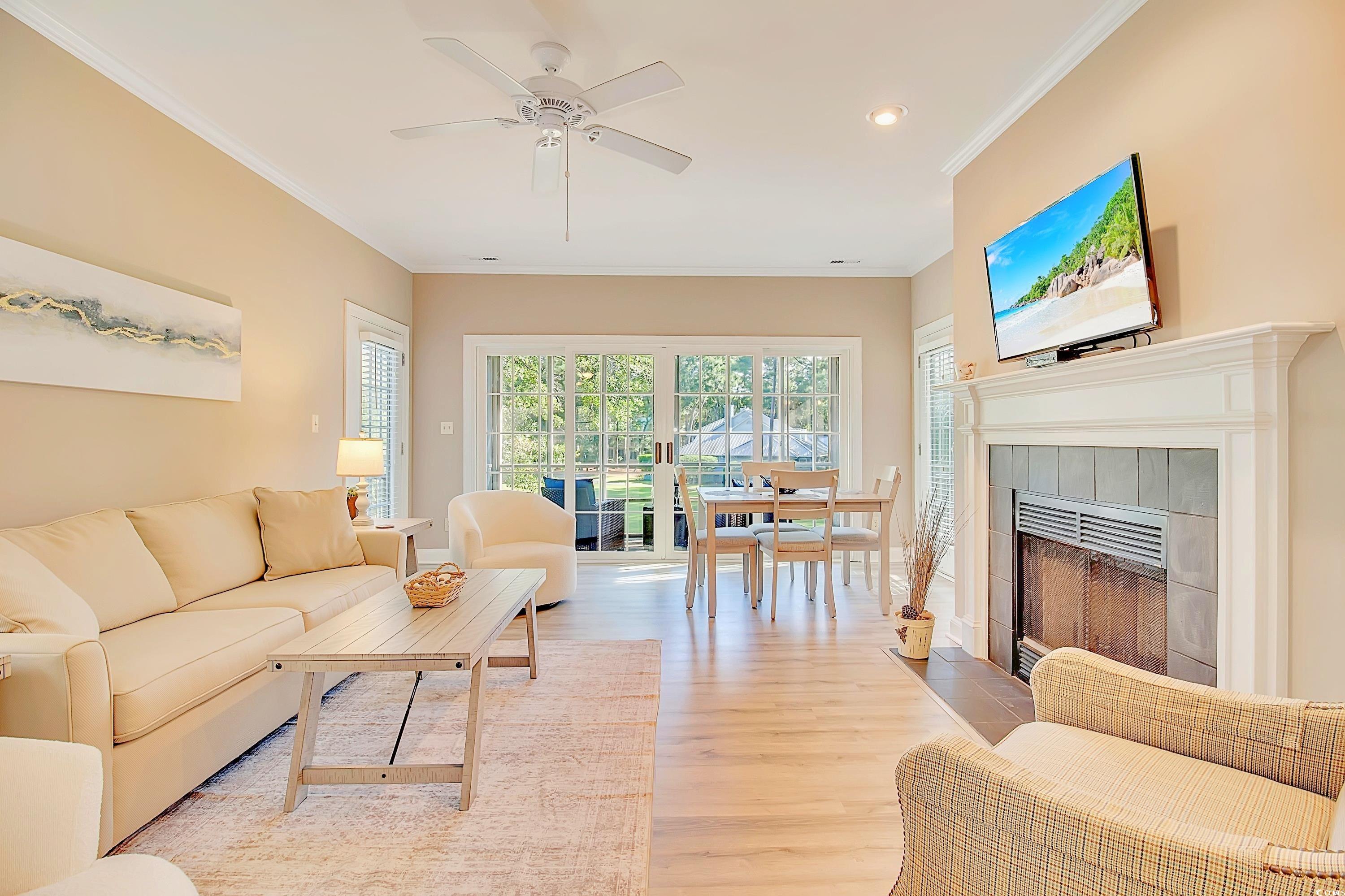 Experience the beauty and charm of Pawleys Plantation with this stunning 2BR/2.5BA condo in the desirable Pawleys Glen community. This thoughtfully designed home offers an open and inviting layout, featuring a versatile dining/flex room, a spacious living area with a cozy gas fireplace, and a screened-in porch perfect for enjoying the serene golf course views. Both bedrooms boast private balconies overlooking the tee box, along with walk-in closets and dual vanities in both bathrooms. The well-appointed kitchen showcases granite countertops, new stainless steel appliances and real hardwood flooring. A convenient wet bar makes entertaining a breeze. Located on the second floor, this condo offers the perfect blend of privacy and picturesque scenery. Sold turnkey with new furnishings in the primary bedroom, living room, decor and more. Nestled in the upscale, gated community of Pawleys Plantation, residents have access to various club membership options and amenities. Pawleys Glen allows for rentals at a minimum of 90 days. Selling to include existing furnishings. Just minutes from the beach and historic Georgetown, and an easy day trip to Charleston or Myrtle Beach, this home is ideal as a primary residence or a relaxing second home. Priced to sell--don't miss this incredible opportunity!