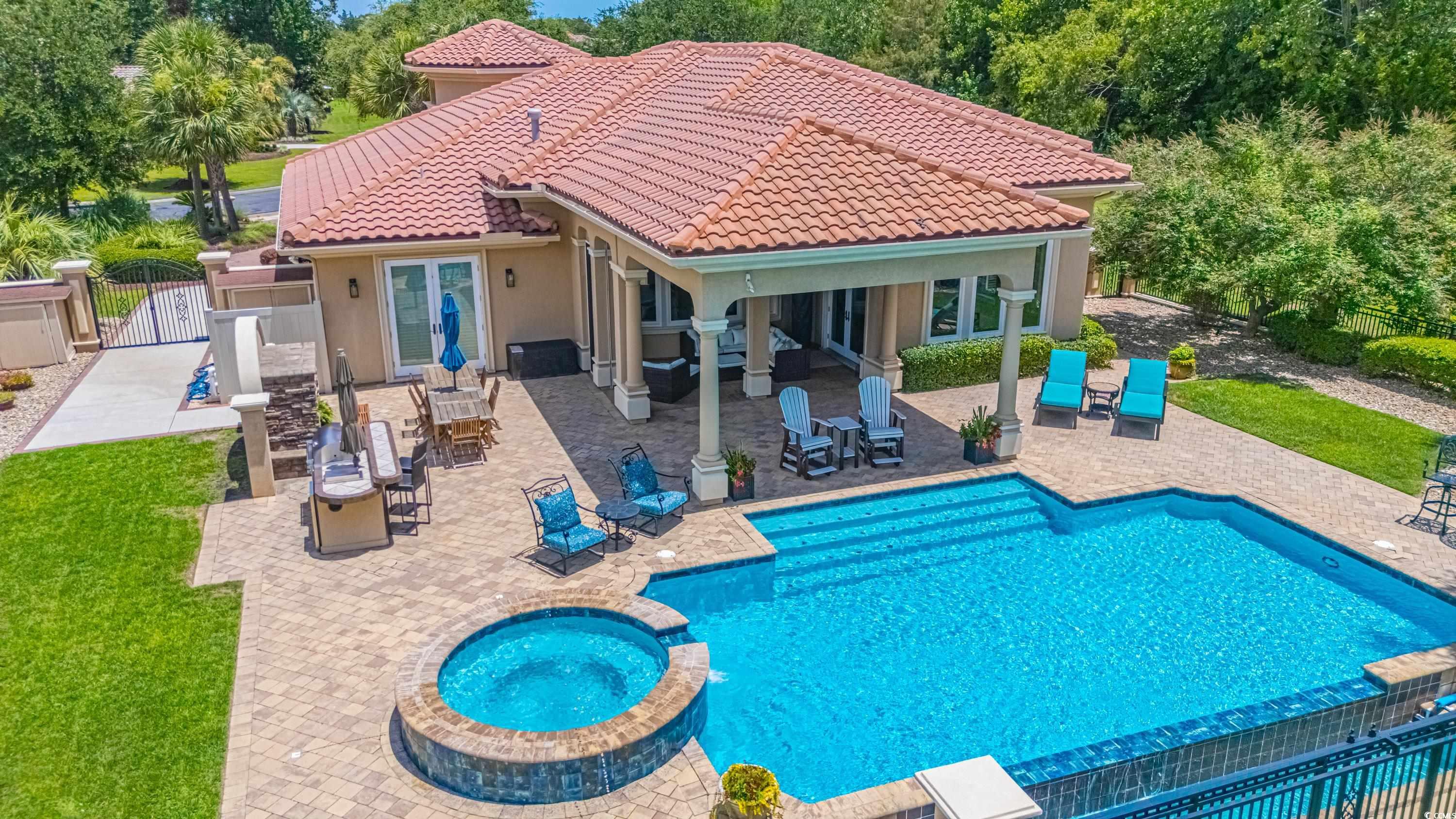 Spectacular Lakefront Living in Grande Dunes. Welcome to 1619 Malaga Circle, a breathtaking, fully updated residence ideally positioned on one of the most desirable lakefront lots in the prestigious Grande Dunes community. This custom, single-level home offers over-the-top style, comfort, and design--from the grand entry to the sweeping sunset views over the water. Step inside to discover three spacious bedrooms, a private office, and a flowing floor plan anchored by a completely reimagined kitchen and great room. No detail was overlooked--designer-selected quartzite countertops, a striking custom copper farmhouse sink, handcrafted wood range hood, and top-tier appliances bring function and sophistication to the heart of the home. Every finish was thoughtfully curated, delivering a space that is both elegant and modern. The primary suite is a true retreat, showcasing a top-to-bottom renovation with spa-like finishes and thoughtful touches throughout. The expansive windows along the rear of the home (recently replaced) frame the stunning pool and lake views, creating seamless indoor-outdoor living. Outside, you'll find a completely resurfaced and re-tiled infinity-edge pool, positioned perfectly to capture mesmerizing sunsets and provide ultimate privacy in your serene backyard oasis. Additional highlights include a formal dining area, oversized two-car garage with additional third bay for a golf cart, and countless interior and exterior upgrades. This home was built with steel framing to add to the quality of construction, insurance and energy efficiency. Grande Dunes is Myrtle Beach's premier luxury community, featuring world-class amenities including a private Ocean Club, golf courses, marina, and miles of Intracoastal Waterway access. This is more than a home--it's a lifestyle. Schedule your private tour today and experience the rare blend of luxury, location, and lakefront beauty at 1619 Malaga Circle.