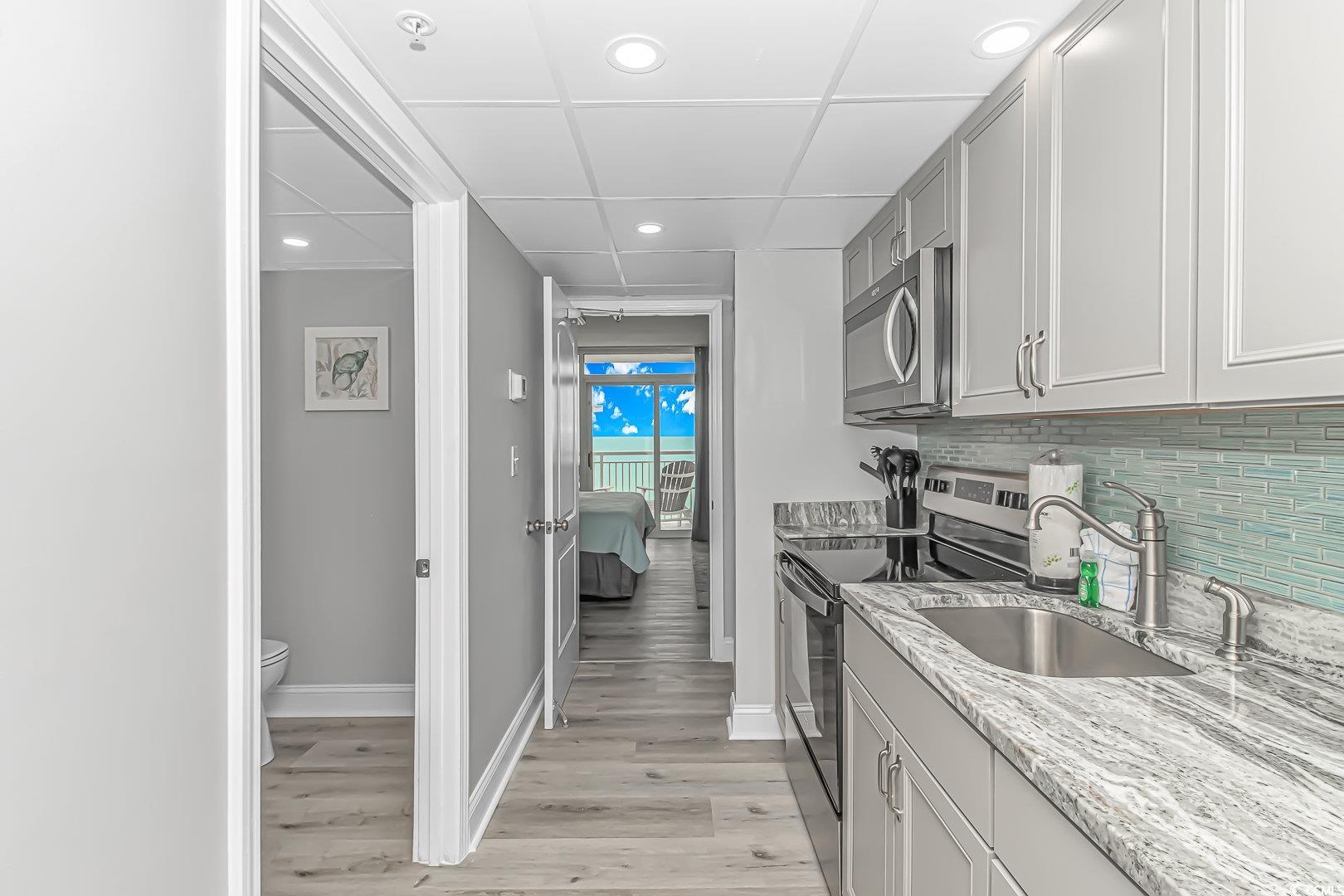 Fully Renovated Oceanfront 1BR at Camelot by the Sea. Experience breathtaking oceanfront views from this exquisitely renovated 1-bedroom condo in the highly sought-after Camelot By the Sea Resort. Designed with attention to detail, this unit features a reimagined layout where the bedroom now faces the ocean--providing unmatched views and a serene coastal ambiance right from your bed. A top-performing short-term rental with a strong income history, this condo boasts luxury vinyl plank flooring throughout, custom modern accent walls with built-in fireplaces in both the bedroom and living room, and all-new furnishings and stylish decor. The kitchen and bathroom showcase granite countertops and other upscale finishes, offering a perfect blend of comfort and sophistication. Centrally located on 20th Avenue North in the heart of Myrtle Beach, you're just steps from the Boardwalk, SkyWheel, top restaurants, vibrant nightlife, and endless attractions. Camelot offers an array of amenities including indoor/outdoor pools, water features, and direct access parking. Seize the opportunity to own this stunning retreat just in time for peak summer rental season.
