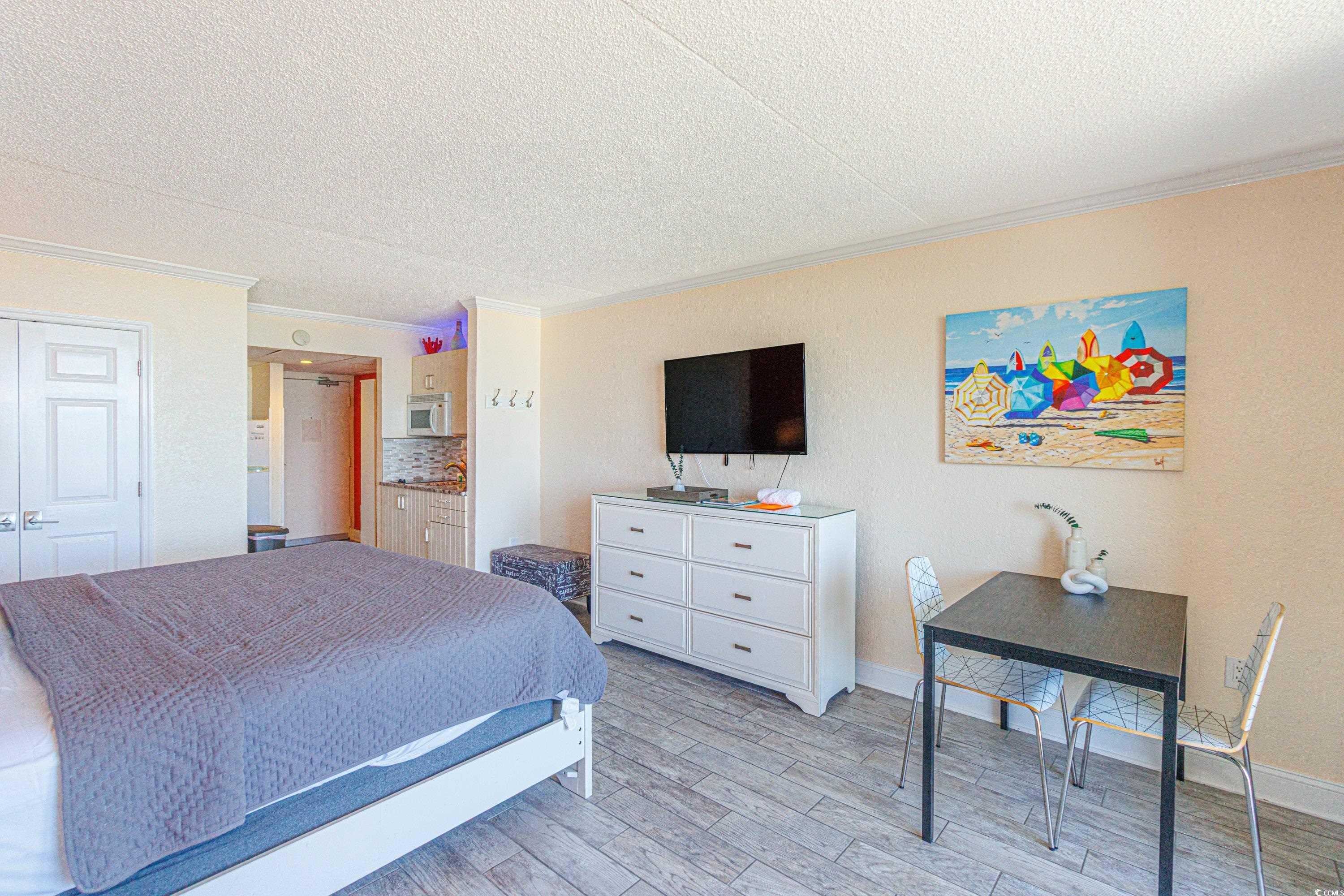 Amazing Oceanfront Studio - Turnkey & Income-Generating! Enjoy stunning oceanfront views from this beautifully updated, fully furnished studio in the sought-after Sand Dunes Resort. This turnkey unit features tile flooring throughout, a fully equipped kitchen with granite countertops (making financing possible), and a modern, updated bathroom. Currently generating rental income, this studio is an ideal vacation home or investment property. The Sand Dunes Resort, located on 74th Avenue North, offers fantastic amenities including indoor and outdoor pools, an arcade, on-site dining and bars, and more. With River City Cafe and Starbucks just steps away, everything you need is right at your doorstep. Don't miss this opportunity to own a prime oceanfront getaway with strong rental potential!
