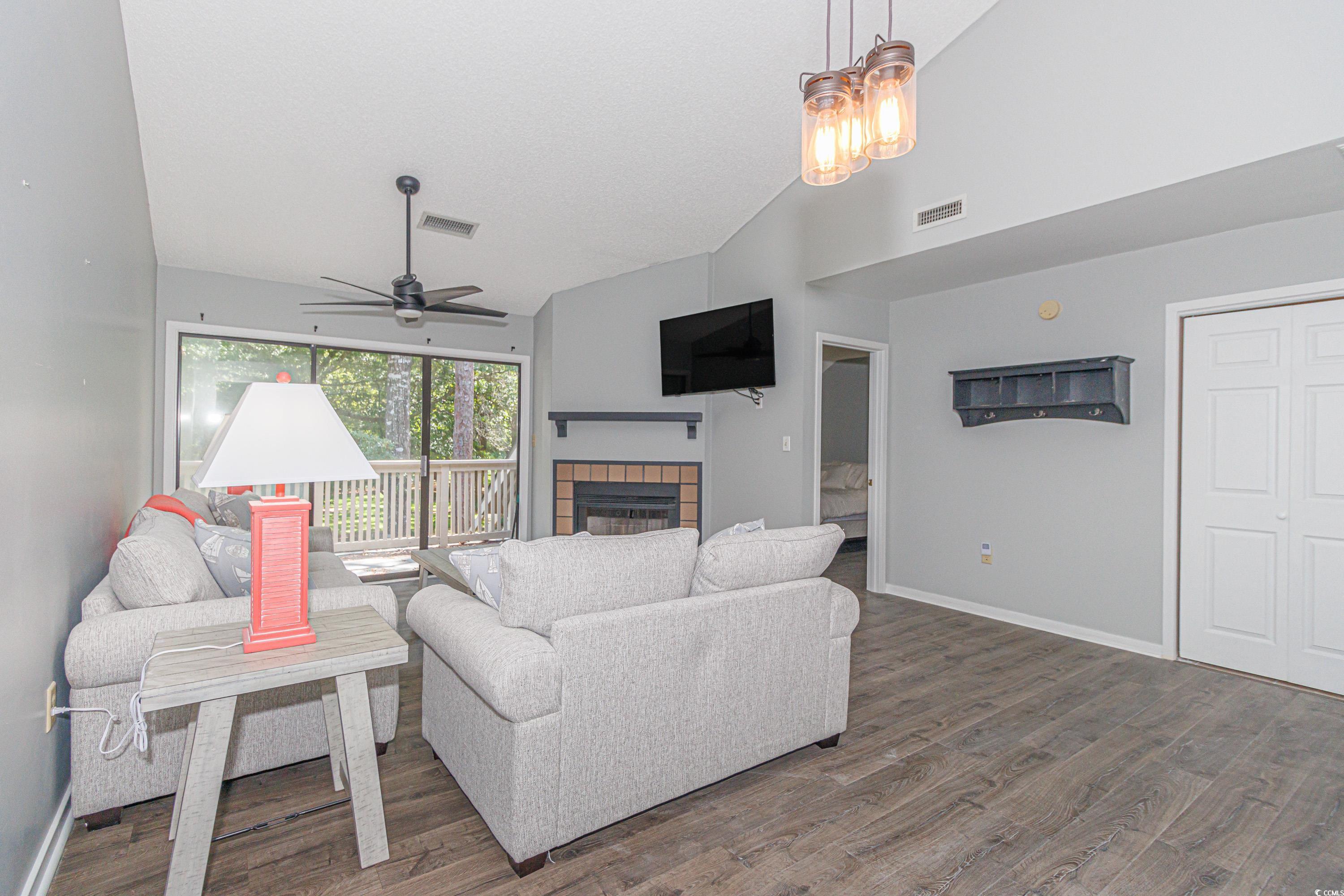 This is the best-priced two-bedroom opportunity currently available in the highly sought-after West Hyde Park section of Kingston Plantation. This inviting condo features durable LVP and tile flooring throughout, granite countertops in the kitchen, and soaring vaulted ceilings in the living area that create an open and airy atmosphere. Sold partially furnished, it offers a turnkey option whether you're looking to move in, vacation, or invest. Kingston Plantation is one of the most desirable gated communities in the Myrtle Beach area, spanning over 145 beautifully maintained acres. Residents and guests enjoy access to an impressive array of top-tier amenities including multiple pools, a fitness center, a luxurious spa, tennis and pickleball courts, and numerous on-site dining options. The lush landscaping and peaceful surroundings give the community a resort-like yet tranquil feel. Take a short stroll along scenic walking paths to the beach or enjoy time at the nearby restaurants and entertainment venues. Whether you're seeking a comfortable primary residence, a second home getaway, or a high-demand vacation rental property with short-term rental potential, this condo checks all the boxes and offers outstanding value in one of Myrtle Beach's premier locations.