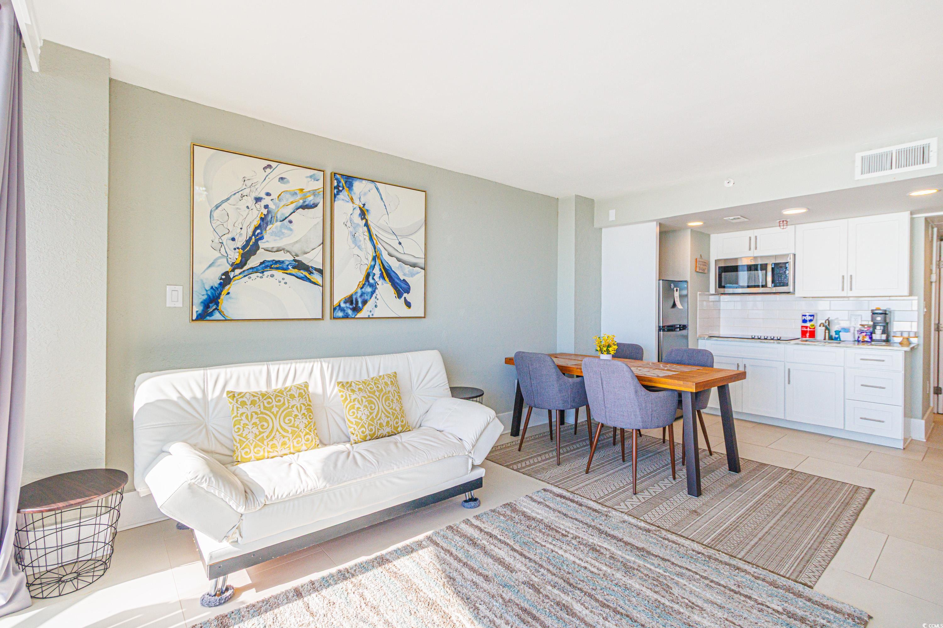 Stunning Oceanfront Penthouse at Meridian Plaza. Experience coastal luxury from the top floor of the Meridian Plaza! This beautifully renovated 1-bedroom oceanfront penthouse showcases breathtaking panoramic views of the Atlantic--from the shoreline below to sweeping vistas north and south from your private semi-circle balcony. Inside, no detail has been overlooked. The condo features tile flooring throughout, smooth ceilings, a fully updated kitchen and bath, shiplap accent wall with built in fireplace and TV, plus a new HVAC system for comfort and efficiency. Sold fully furnished with high-end decor, this turnkey property is both elegant and practical--perfect as a primary residence, vacation retreat, or high-performing rental investment. Ideally located on 23rd Avenue North in Myrtle Beach, you'll be within easy walking distance to dining, entertainment, and the best of the Grand Strand. Whether you're looking for your own piece of paradise or an income-generating coastal escape, this penthouse delivers it all.