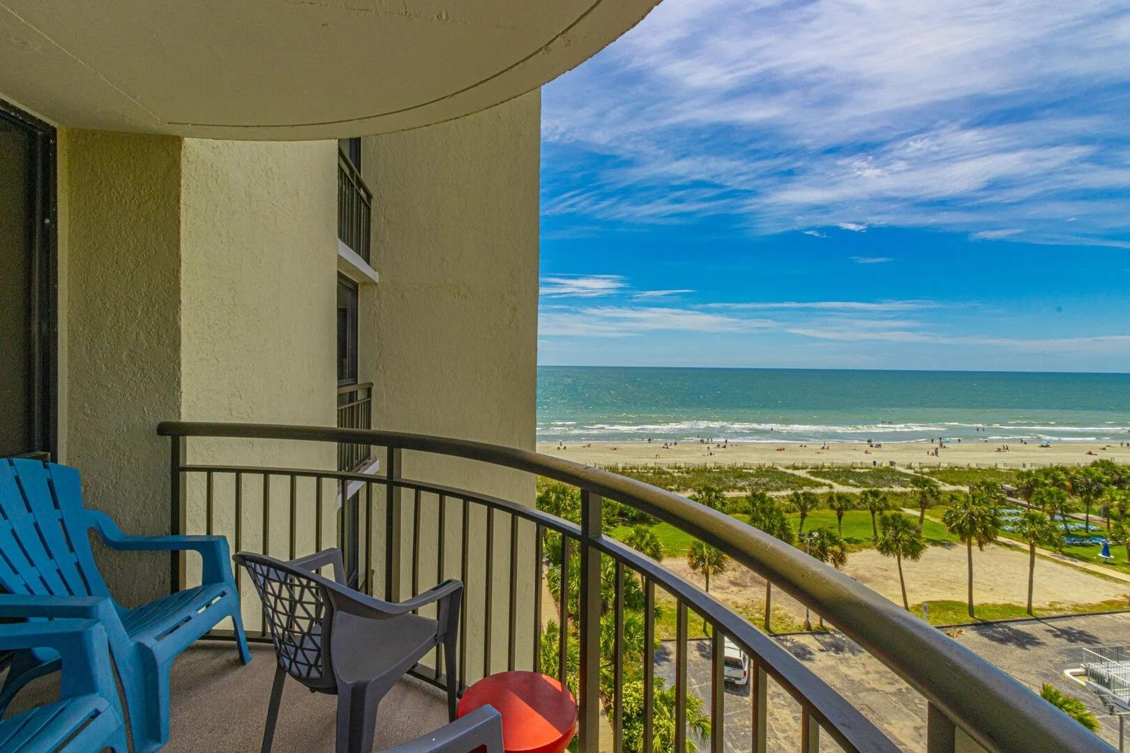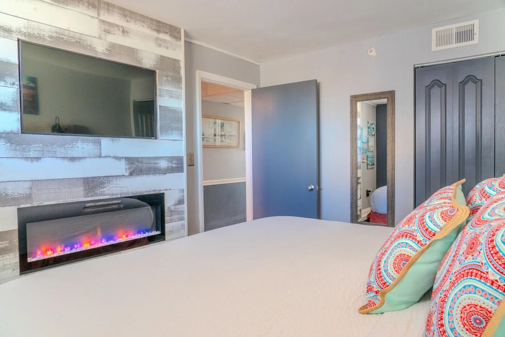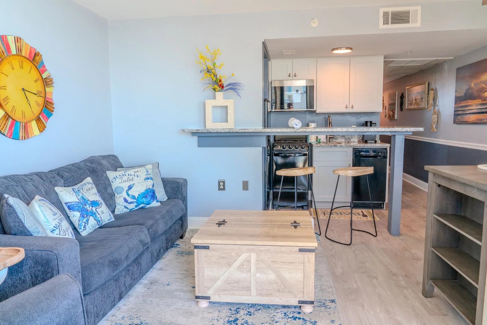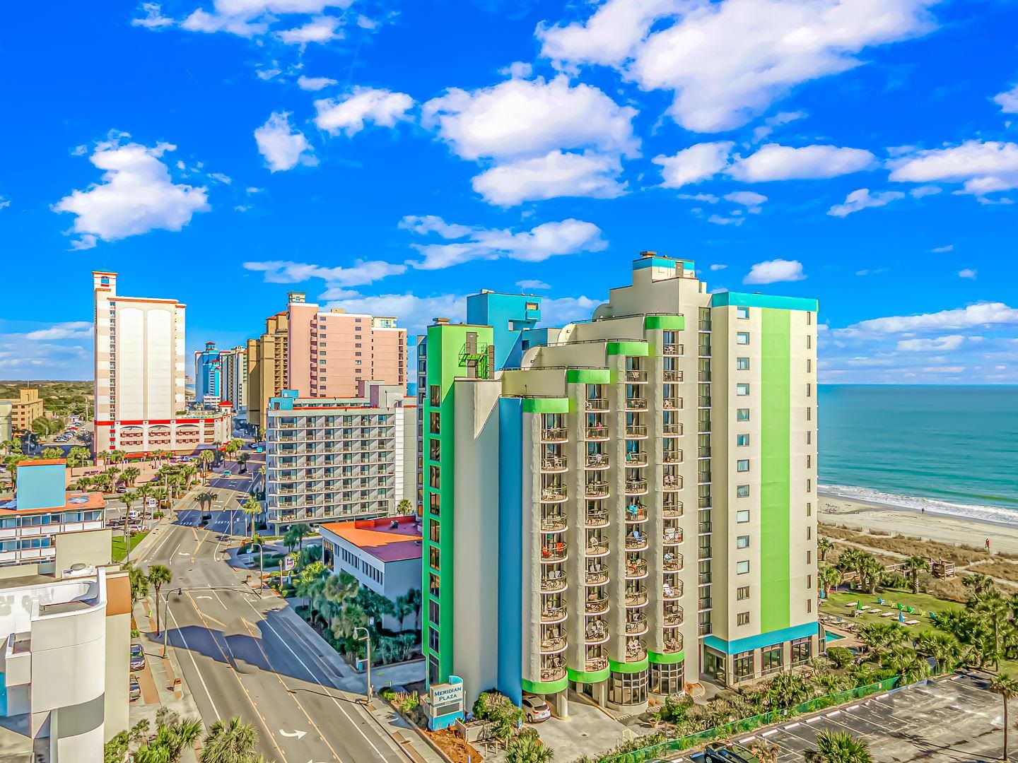Must see well-appointed 1-bed, 1-bath oceanview condo in the Meridian Plaza Resort -- a property with strong vacation rental demand and an ideal location in Myrtle Beach. This 7th-floor unit offers breathtaking Atlantic Ocean views from the large balcony, making it a standout among rental options. The interior is designed for comfort and guest appeal, featuring a King bedroom and a Queen sleeper sofa in the living room, comfortably accommodating up to four guests. The condo is truly turnkey for immediate use or rental. Stylish furnishings, accent walls and electric fireplaces in the bedroom and living room. Recent updates include new luxury vinyl plank flooring, replaced kitchen and bathroom cabinets and countertops, fresh paint, and a remodeled bathroom with a stylish tiled walk-in shower, all of which elevate both owner enjoyment and rental performance potential. Meridian Plaza offers classic oceanfront resort amenities, including indoor and outdoor pools and hot tubs, direct beach access, and a highly walkable location near Myrtle Beach dining, attractions, and entertainment. With its ocean views, thoughtful updates, and turnkey setup, this condo is a compelling choice as a vacation home, second residence, or income-producing property.