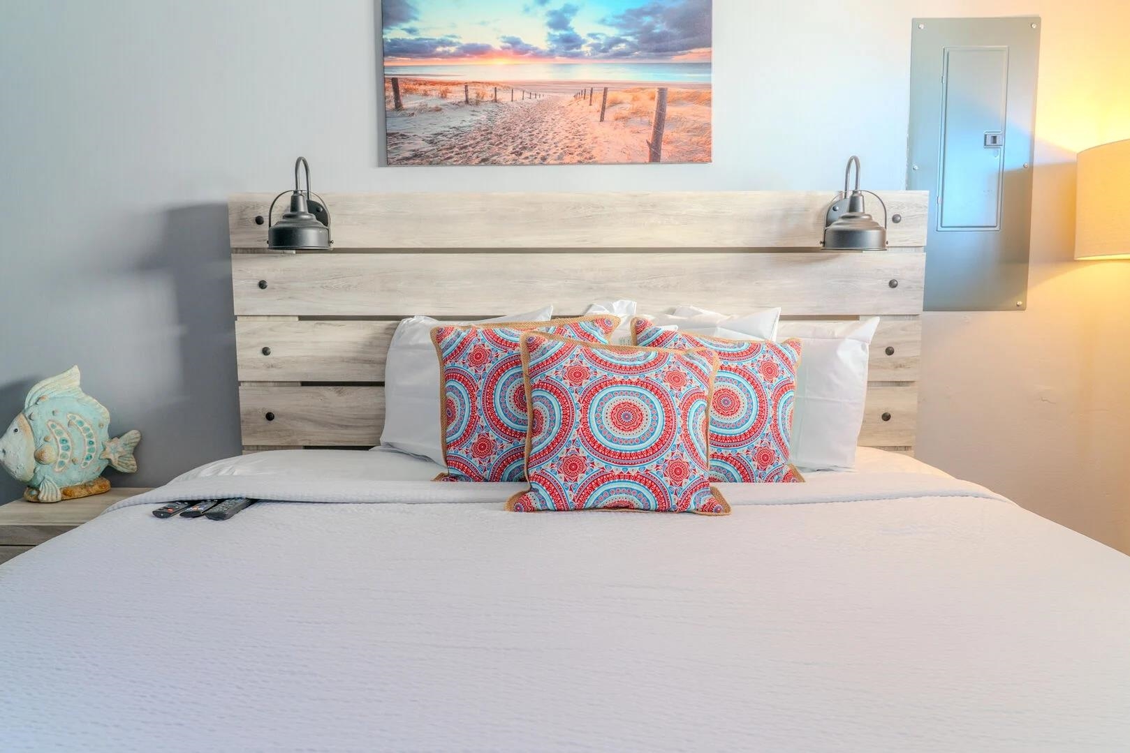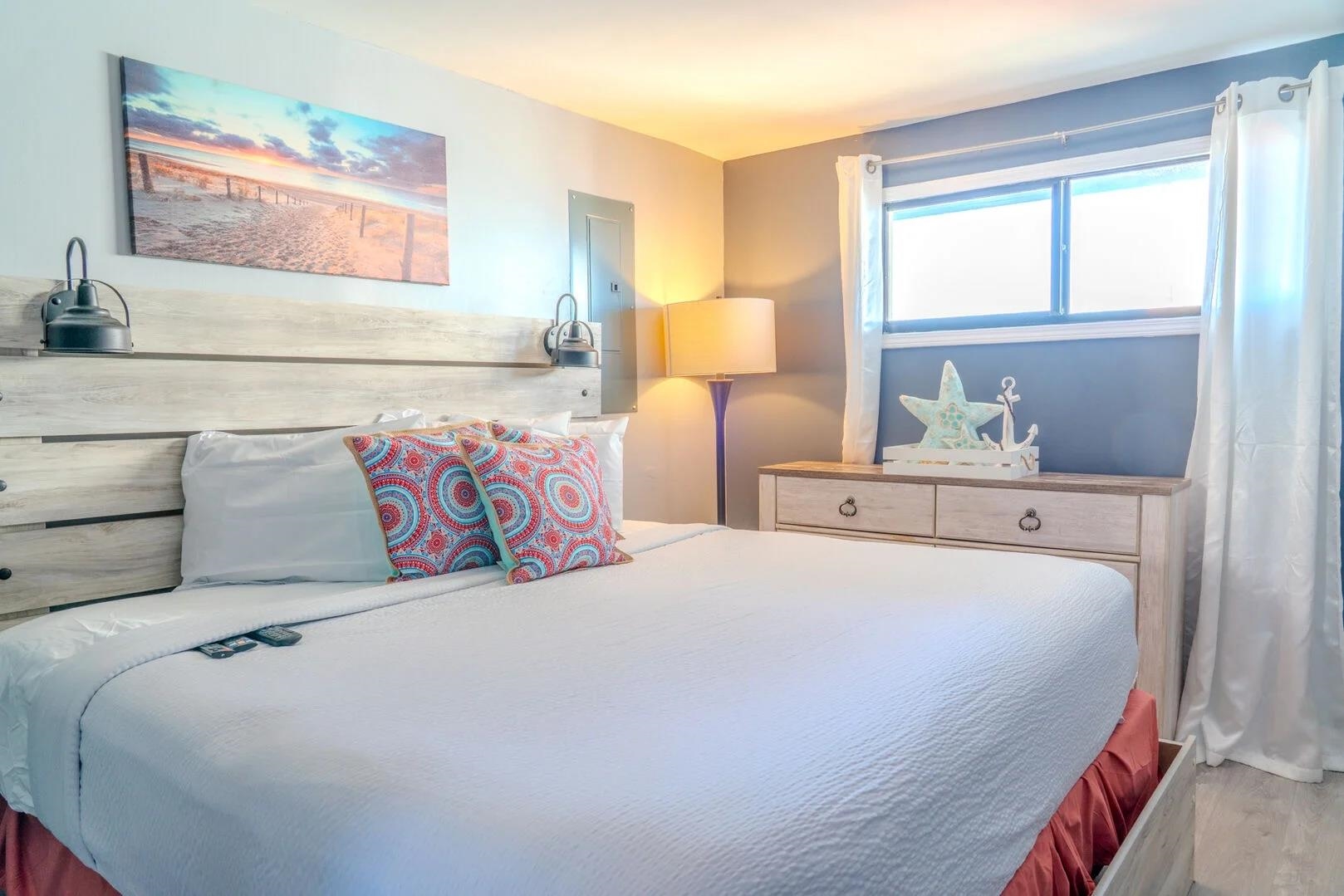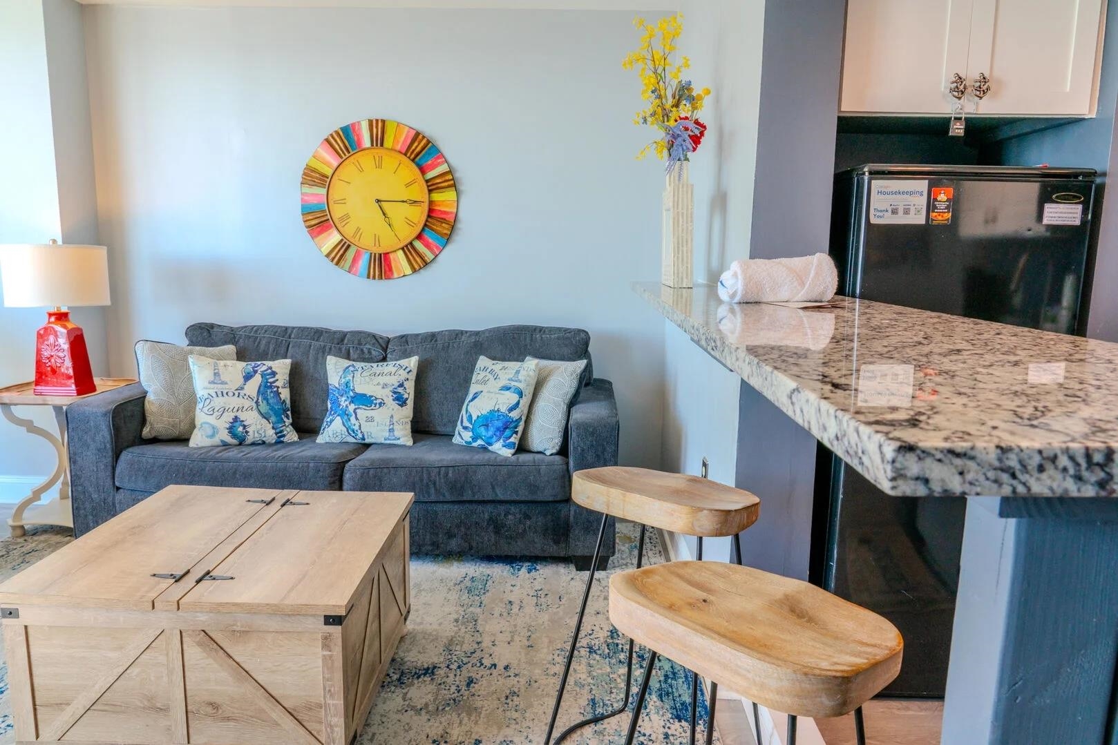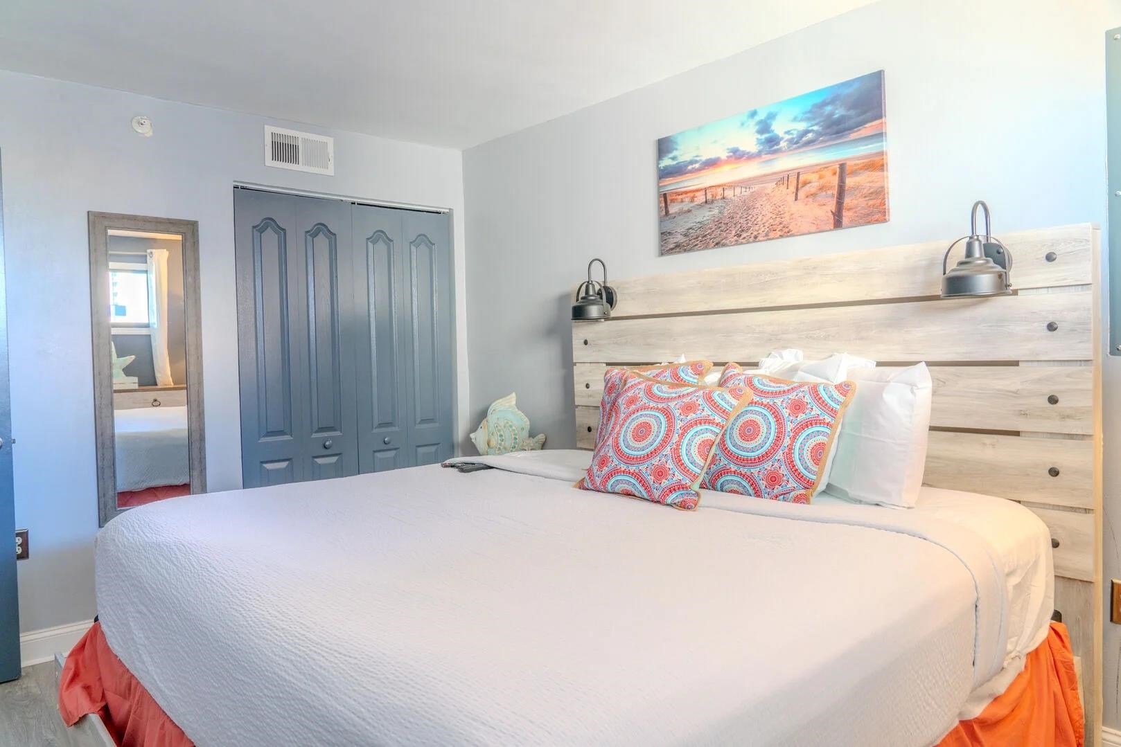 Must see well-appointed 1-bed, 1-bath oceanview condo in the Meridian Plaza Resort -- a property with strong vacation rental demand and an ideal location in Myrtle Beach. This 7th-floor unit offers breathtaking Atlantic Ocean views from the large balcony, making it a standout among rental options. The interior is designed for comfort and guest appeal, featuring a King bedroom and a Queen sleeper sofa in the living room, comfortably accommodating up to four guests. The condo is truly turnkey for immediate use or rental. Stylish furnishings, accent walls and electric fireplaces in the bedroom and living room. Recent updates include new luxury vinyl plank flooring, replaced kitchen and bathroom cabinets and countertops, fresh paint, and a remodeled bathroom with a stylish tiled walk-in shower, all of which elevate both owner enjoyment and rental performance potential. Meridian Plaza offers classic oceanfront resort amenities, including indoor and outdoor pools and hot tubs, direct beach access, and a highly walkable location near Myrtle Beach dining, attractions, and entertainment. With its ocean views, thoughtful updates, and turnkey setup, this condo is a compelling choice as a vacation home, second residence, or income-producing property.