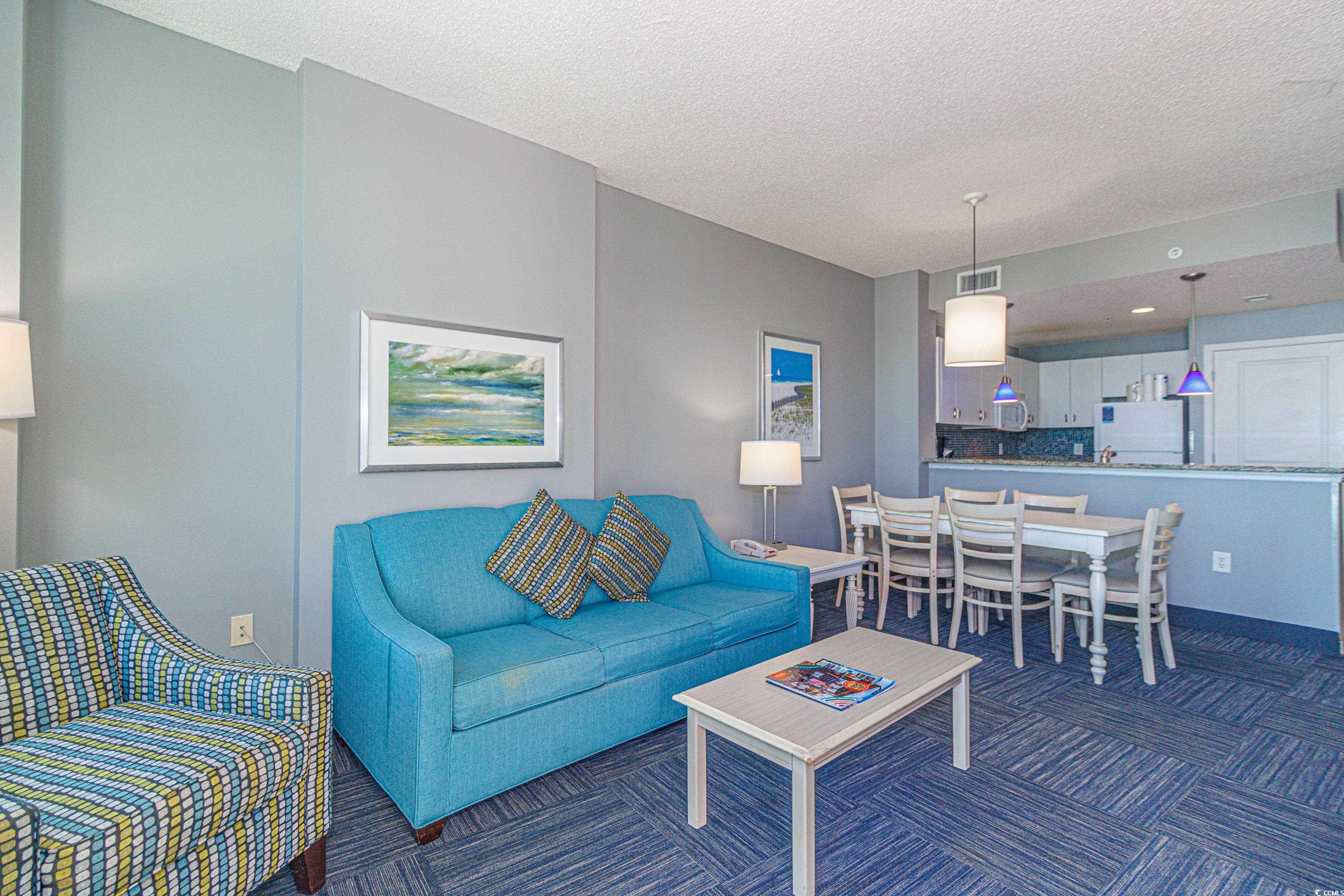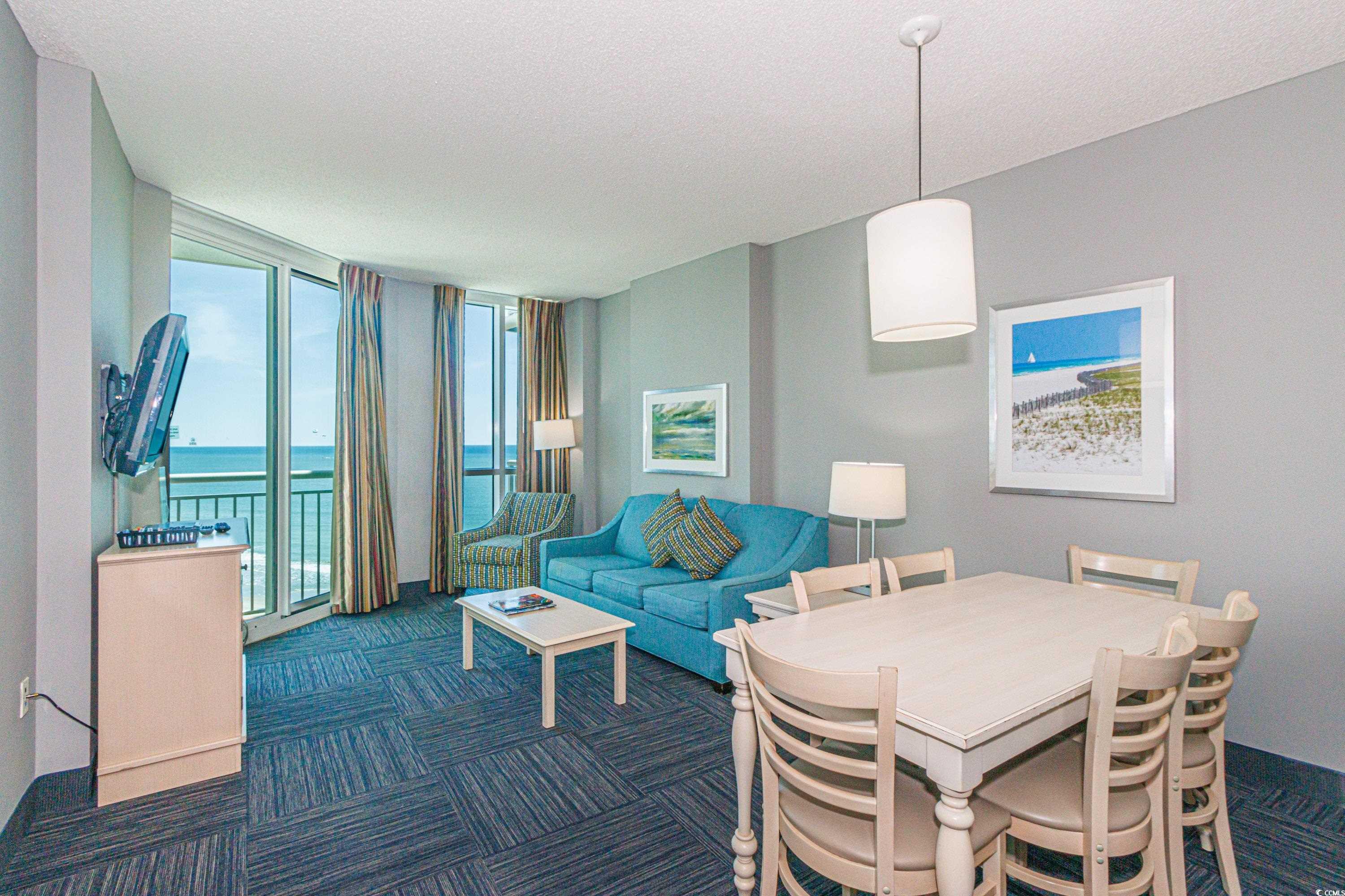 Exceptional Oceanfront Condo in Avista Resort - North Myrtle Beach This unique 2-bedroom, 2-bathroom condominium is a rare find, offering 10-foot ceilings - a feature exclusive to only a few floors in the sought-after Avista Resort. Situated in the desirable Ocean Drive area of North Myrtle Beach, this spacious unit provides breathtaking ocean views from both the living room and primary bedroom, each opening to a private oceanfront balcony. Designed for both comfort and style, the condo boasts updated furnishings and elegant granite countertops in both the kitchen and bathrooms. The open-concept layout enhances the sense of space and is perfect for relaxing or entertaining. As a full-service resort, Avista Resort offers an impressive array of amenities, including indoor and outdoor pools, a hot tub, a fitness center, an on-site restaurant, and a bar. With its enclosed corridors and unmatched location, you'll experience resort-style living at its best. Whether you're looking for a lucrative income-producing property, a second home that can pay for itself, or a primary residence to enjoy the best of oceanfront living, this condo has it all.