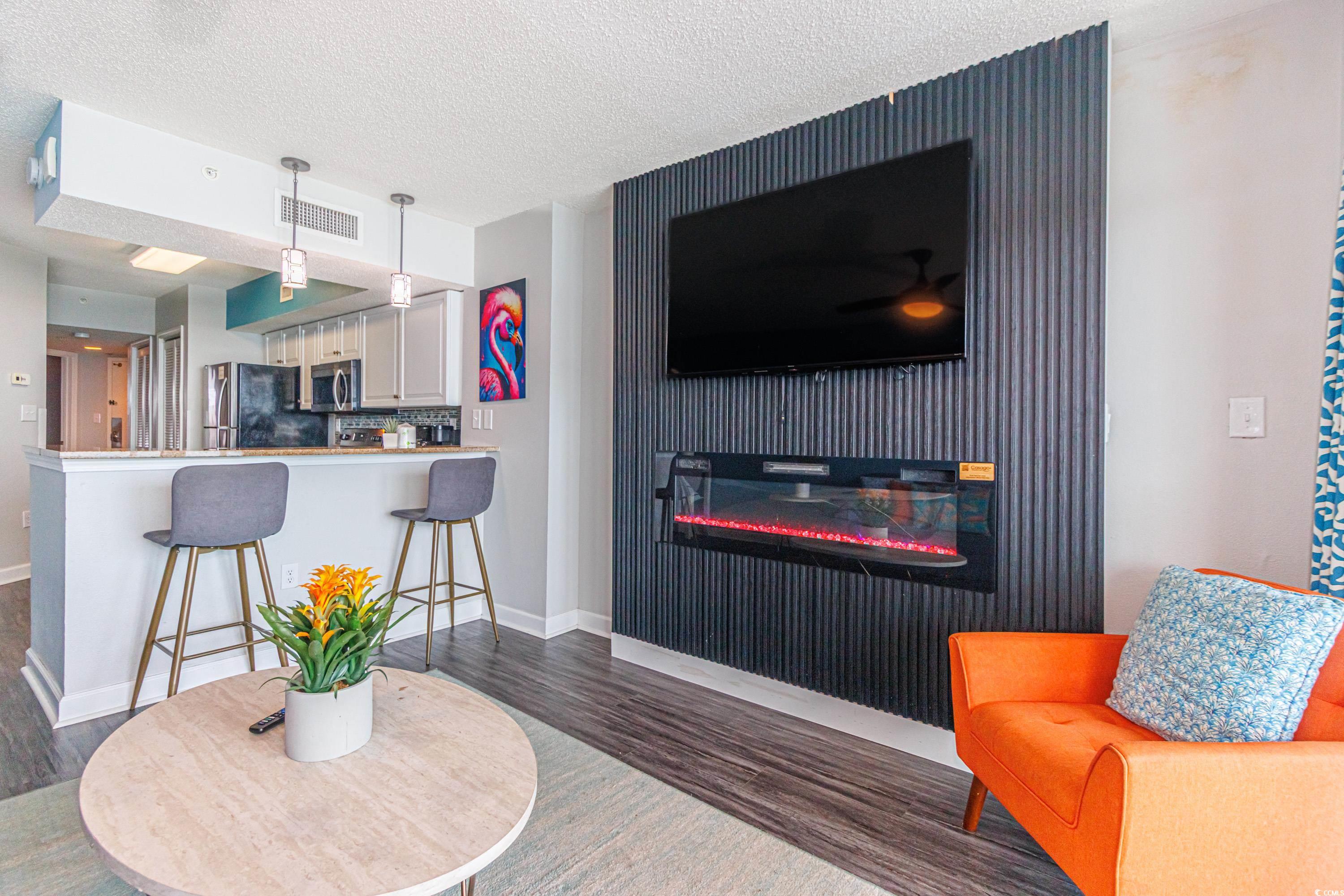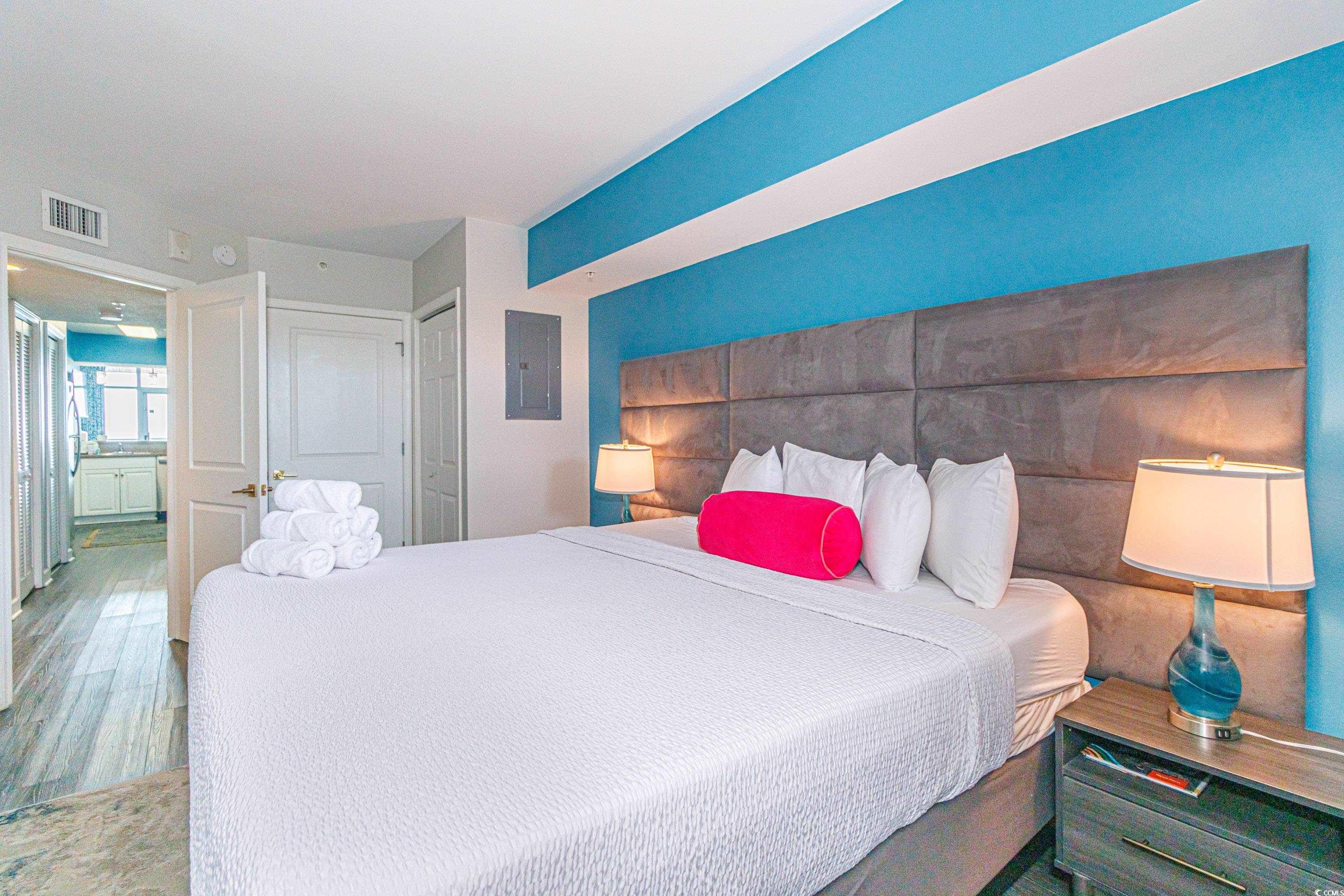 Truly One of a Kind - Premier Oceanfront Penthouse at Dunes Village Resort. Welcome to the best-located unit in the highly sought-after Dunes Village Resort -- this top-floor, direct oceanfront 1BR/1BA condo is not just a vacation home, it's a turnkey investment opportunity with a strong rental history. Perfectly positioned in the center of the building on the penthouse level, this condo offers one of the most desirable locations in the entire complex. This property is a rental powerhouse, delivering consistent income and strong performance year after year. Now, with a full suite of premium upgrades, its potential is greater than ever. From the moment you enter, you'll notice the attention to detail. Everything has been updated -- from the sleek, modern cabinetry and granite countertops to the new luxury flooring and fresh paint throughout. The stylish LED-backlit fireplace feature wall adds a touch of elegance, while updated decor, artwork, and thoughtful design elements create a welcoming, high-end feel. There's plenty of storage throughout, plus the convenience of an in-unit washer and dryer, central HVAC, and free Wi-Fi. The spacious bedroom is a private retreat, featuring a brand-new king-sized bed with a new frame, mattress, and headboard. A custom board-and-batten accent wall adds charm, and the room is complete with new nightstands, lamps, a dresser, and a mounted flat-screen TV. Just down the hall, the bathroom has been completely renovated with a fully tiled walk-in shower, glass shower doors, new fixtures, a modern vanity, and an updated mirror. Unlike many other oceanfront 1BR units, this layout offers a true private bedroom, a full-sized kitchen, and a generously sized living area -- perfect for relaxing or entertaining. Practically everything in the condo is brand new, and no expense was spared in the renovations. Located in one of Myrtle Beach's most desirable areas on 52nd Avenue North, Dunes Village Resort offers unmatched amenities. Enjoy over 30,000 square feet of year-round indoor water park fun, including massive water slides, multiple pools, and kid-friendly attractions. On-site dining options, a coffee shop, mini-golf, volleyball courts, playgrounds, and more make this one of the most complete resort experiences in town. With a history of excellent rental performance and top-tier upgrades now in place, this property is truly a rare opportunity. Whether you're looking for a vacation home, an income-generating investment, or both, this penthouse-level condo checks every box.
