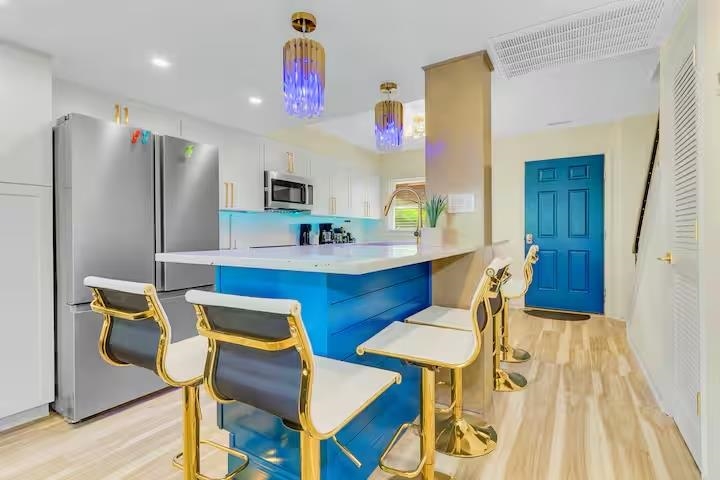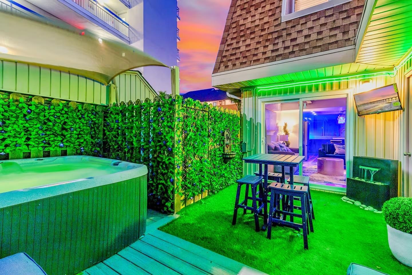 Just steps away from the best stretch of beach in the area, This beautiful newly remodeled end unit is a one of a kind with an extended large outdoor patio area. This gorgeous home is completely opened up with an amazing kitchen with extra cabinets, high end countertops , all new stainless-steel appliances with gold accents throughout the home. The half bath downstairs is fully remodeled with shiplap and gold touches. The large living room has a custom shiplap fireplace and all new furnishings. Along with being on the end, the back patio area is larger than the other 14 units. Outside you will find and outdoor kitchen, large 7-person hot tub, grass and decking , outside sitting area with tv, and even an outdoor custom enclosed shower. Upstairs you will find 2 large bedrooms with new furnishings and a beautiful updated bathroom with all gold touches making it absolutely stunning. All furnishing, TVs, and appliances are included in the sale. This is truly turn key. Can make this beautiful home your primary, second home or a short term rental or a little bit of everything. Why not.. A home like this rarely comes out on the market so will go fast. In the northern part of Myrtle Beach where you are close to everything the Grande Strand has to offer, Broadway at the Beach,Barefoot Landing, entertainment venues, shopping, Golf and great dining.