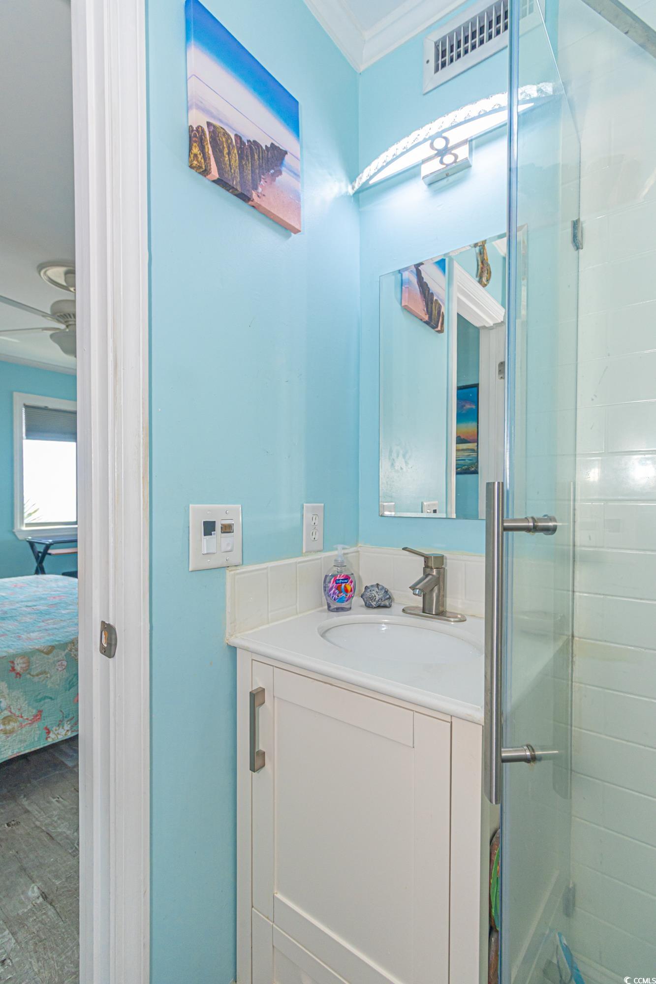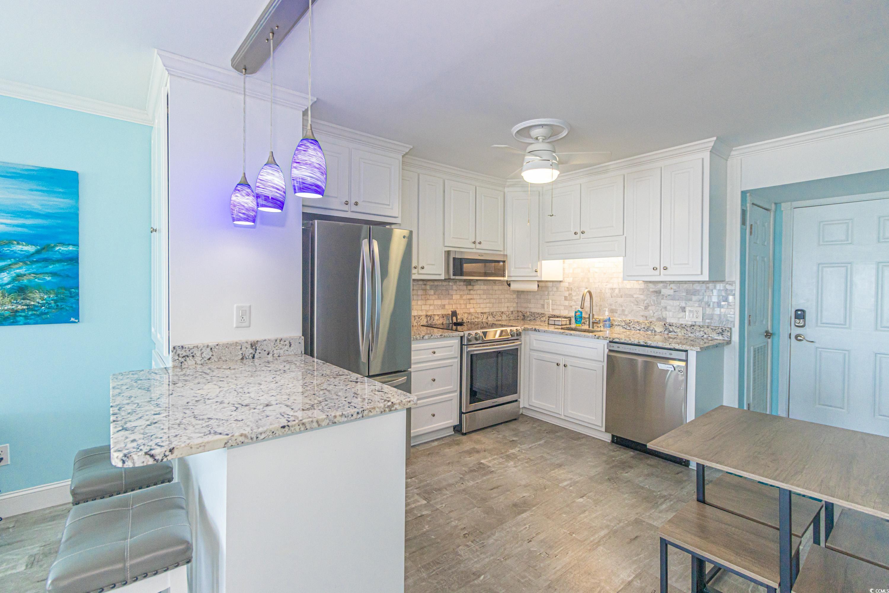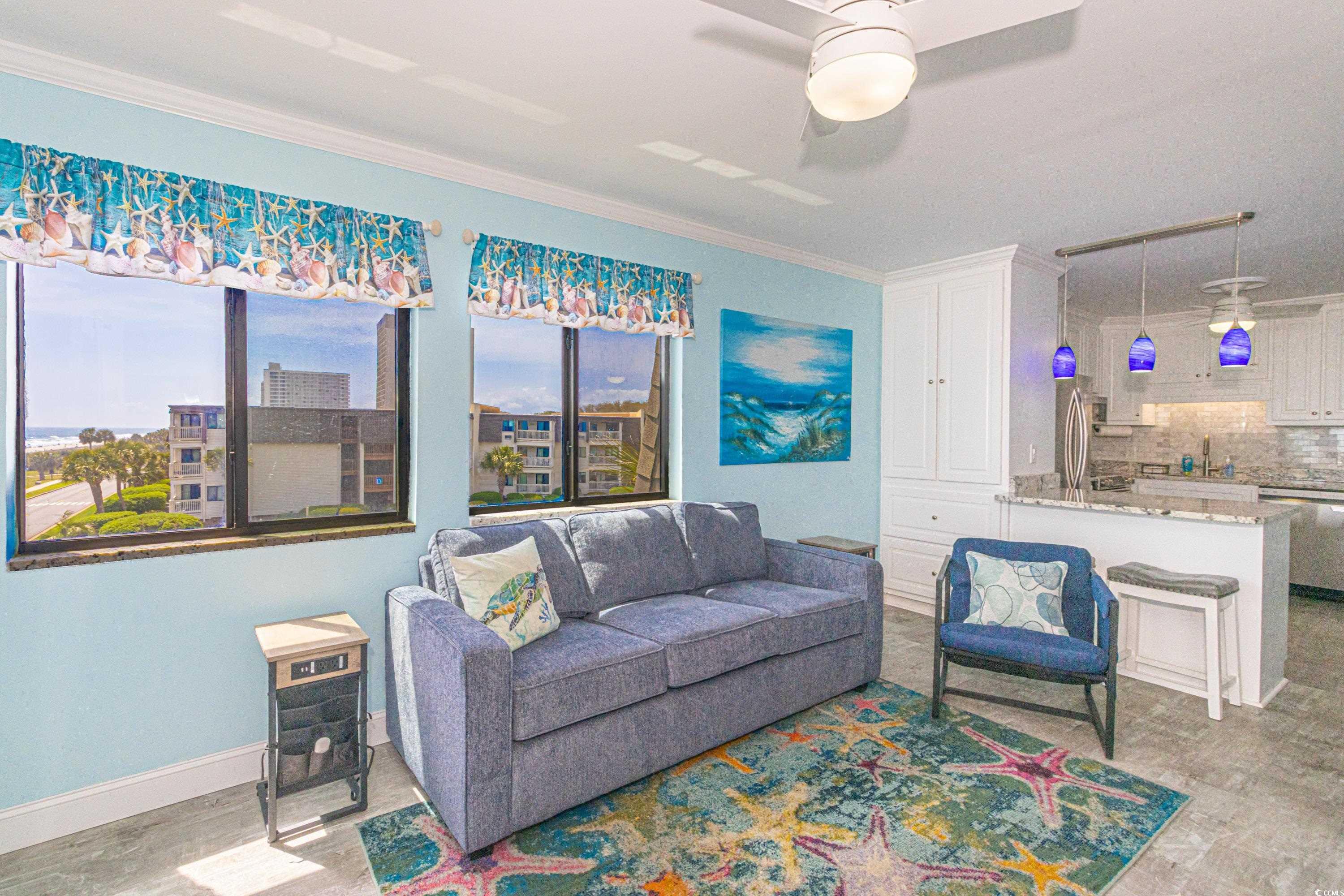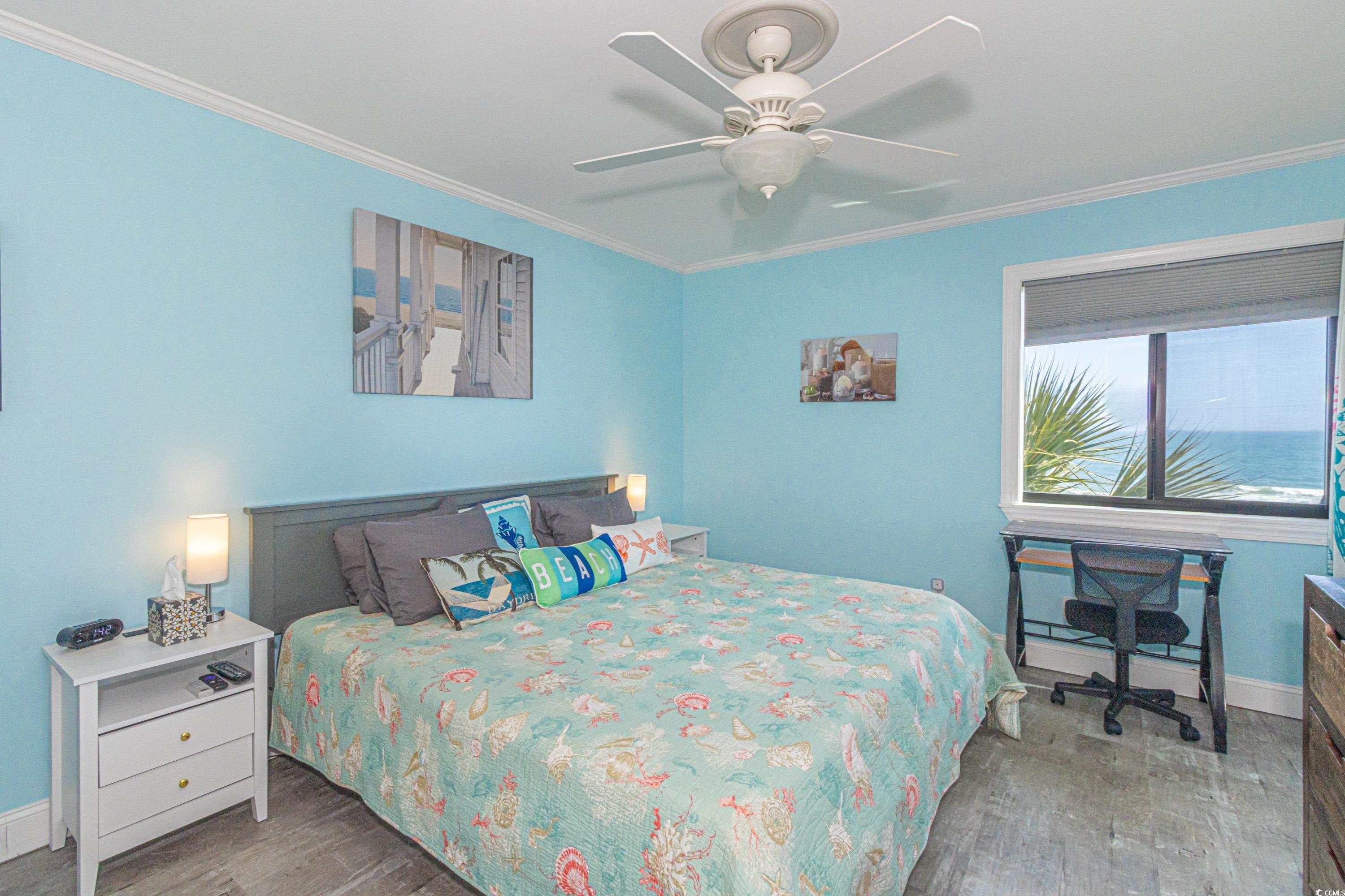 Top-Floor, Corner Luxury Oceanfront Condo - Unmatched Views! This must-see direct oceanfront, top-floor, corner 2BR/2BA unit in the highly sought-after Ocean Forest Villas. Offering unparalleled privacy with no one above you and extra corner-unit windows for breathtaking panoramic views, this condo is truly one of the best in the complex. Every inch has been upgraded to perfection, featuring central HVAC for year-round comfort, a gourmet kitchen with granite countertops, high-end cabinetry, and a beautifully tiled backsplash, along with custom built-ins for added storage and functionality. The upscale appliances include a full-sized washer and dryer, as well as a tankless water heater for convenience. Throughout the unit, you'll find durable and stylish LVP flooring, sheetrock walls (a major upgrade from the original paneling), crown molding, smooth ceilings, and upgraded electrical. Thoughtful details like mechanical blinds and additional custom storage make this condo both elegant and practical. As part of the Ocean Forest Villas community, residents and guests enjoy two pools, two hot tubs, and two grill areas, all just steps from the pristine beachfront. The E Building, located at the northernmost part of the complex, offers extra tranquility and direct access to one of the community's popular hot tubs. Nestled in the exclusive Golden Mile and historic cabana section of Myrtle Beach, this hidden gem provides a peaceful, residential feel while keeping you just minutes from top dining, shopping, and entertainment. If you're looking for the perfect blend of luxury, privacy, and oceanfront living, this is it. Schedule your private showing today!