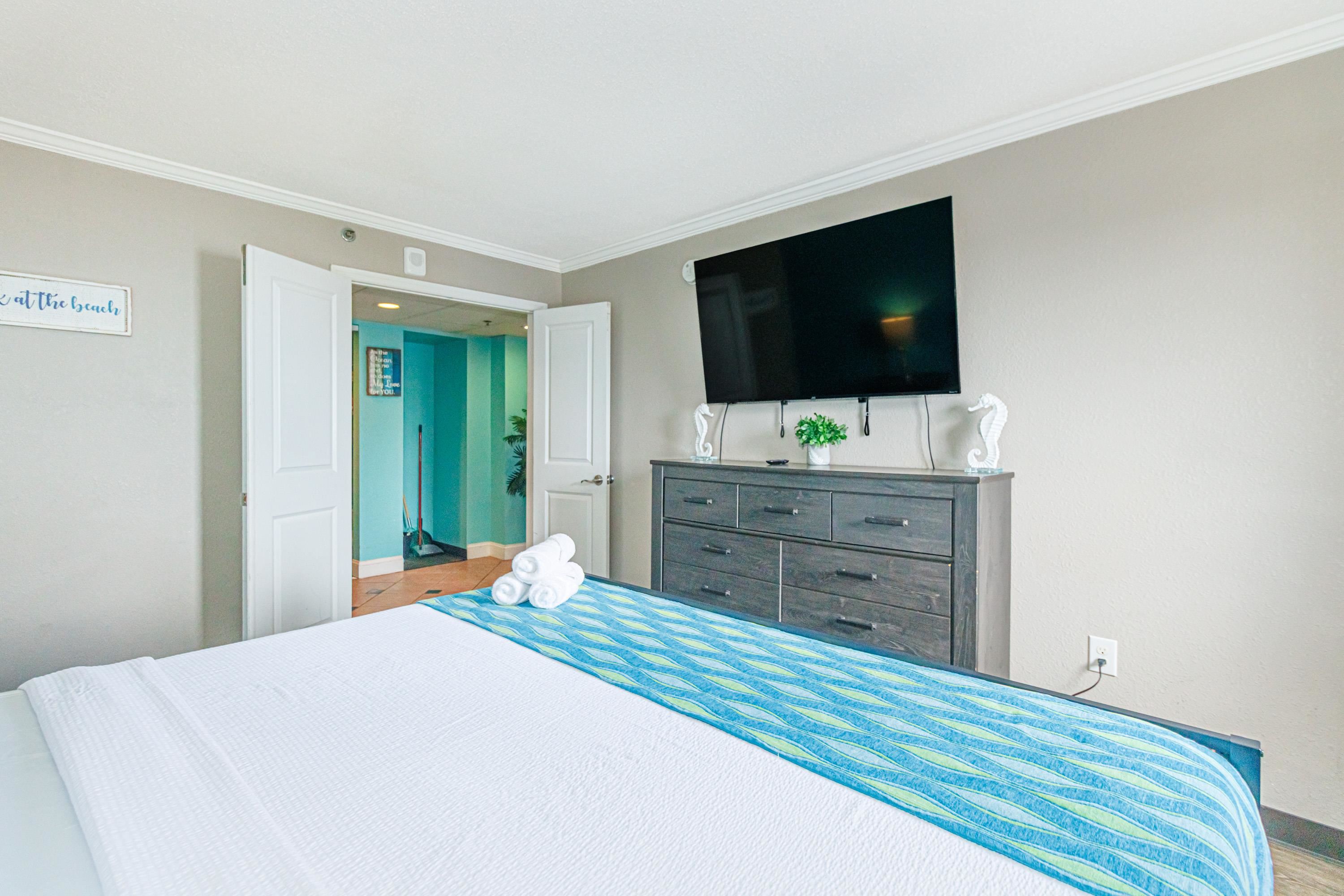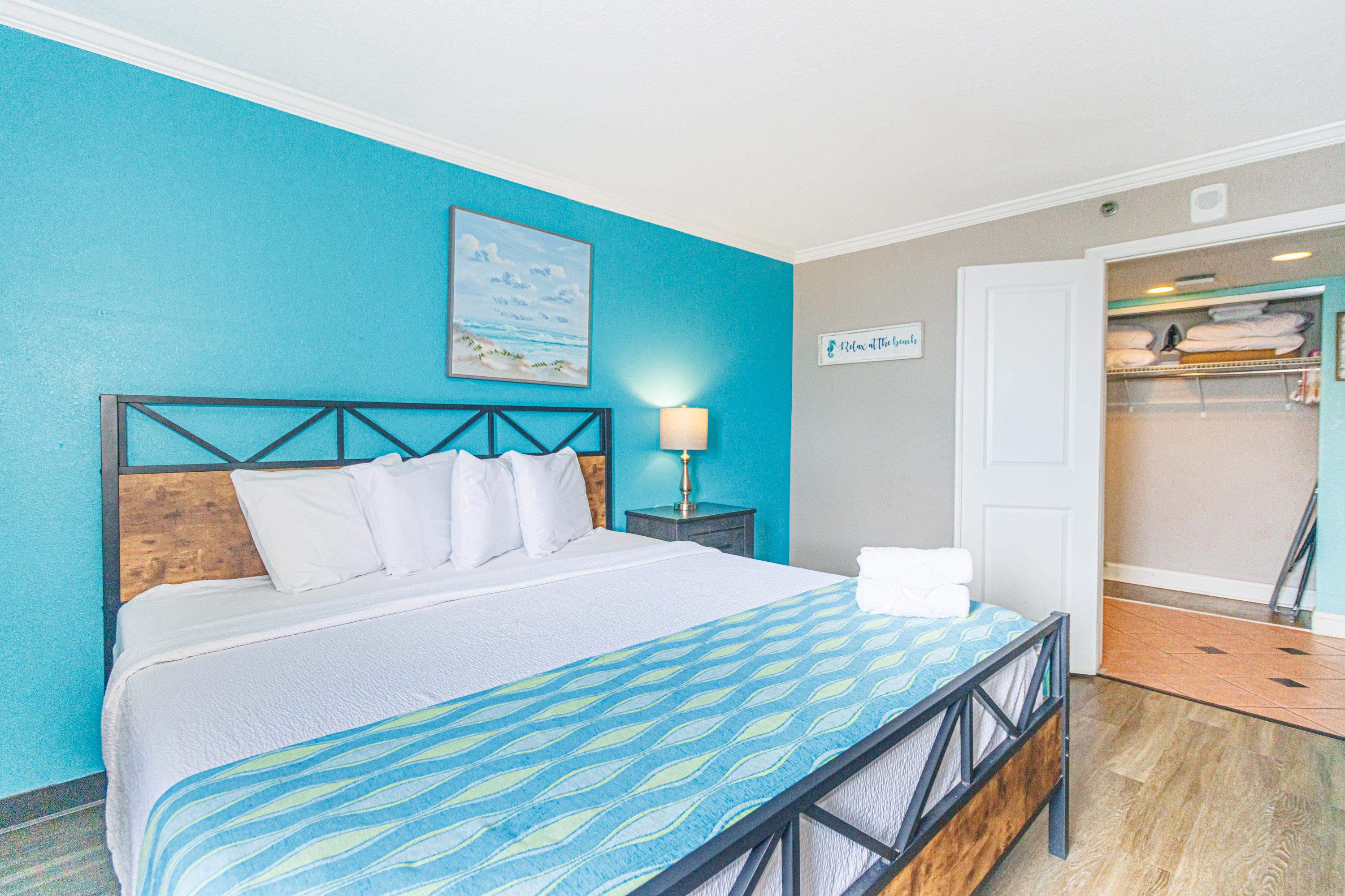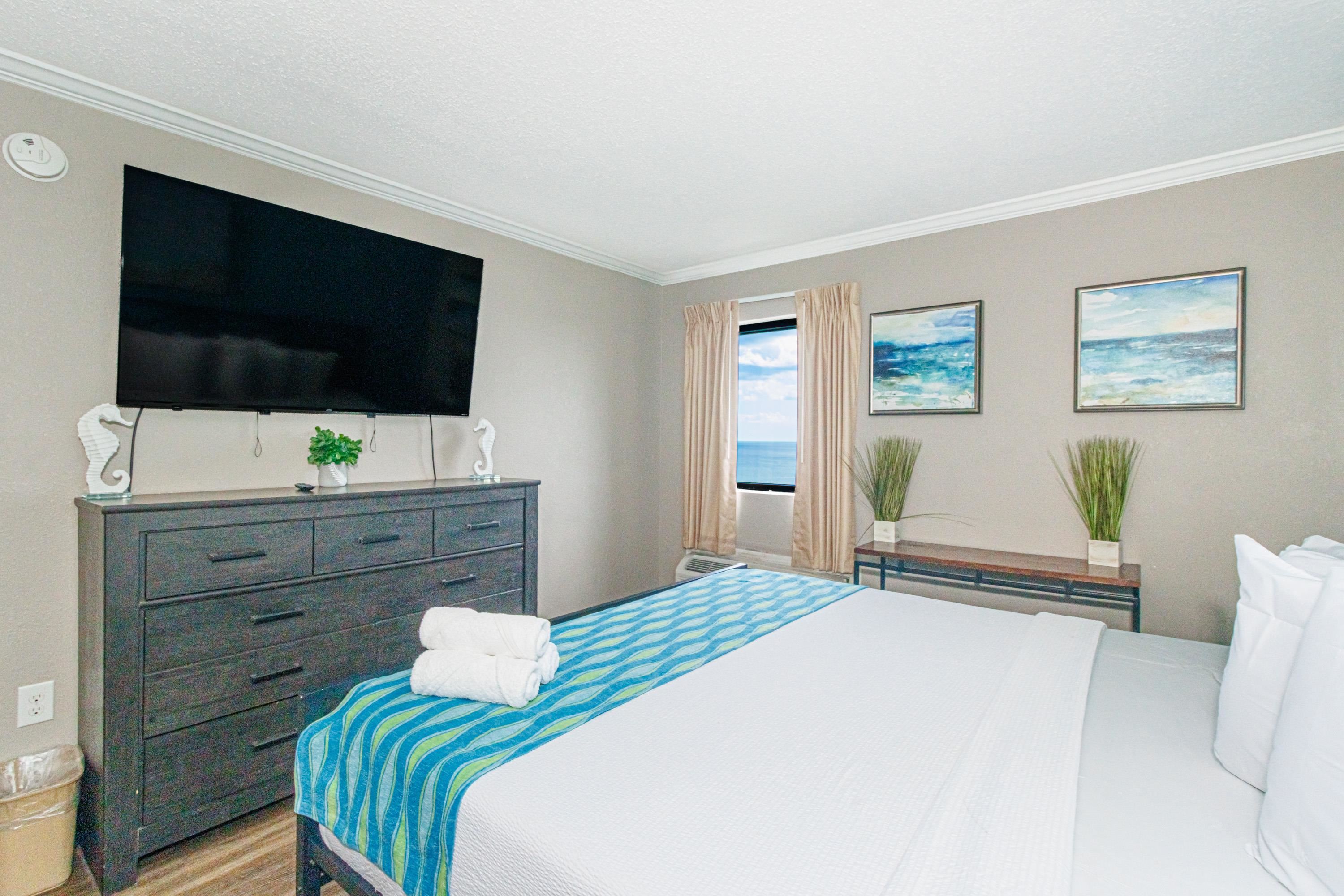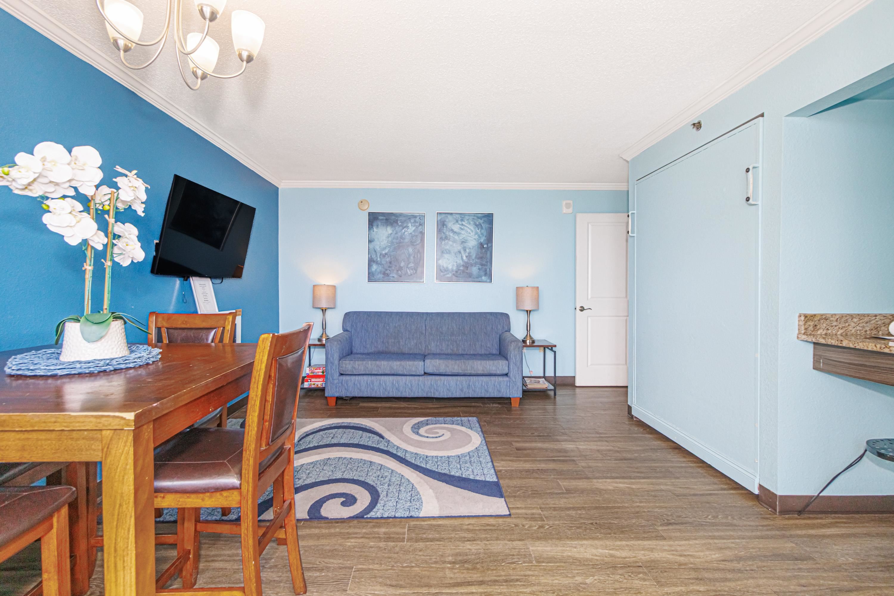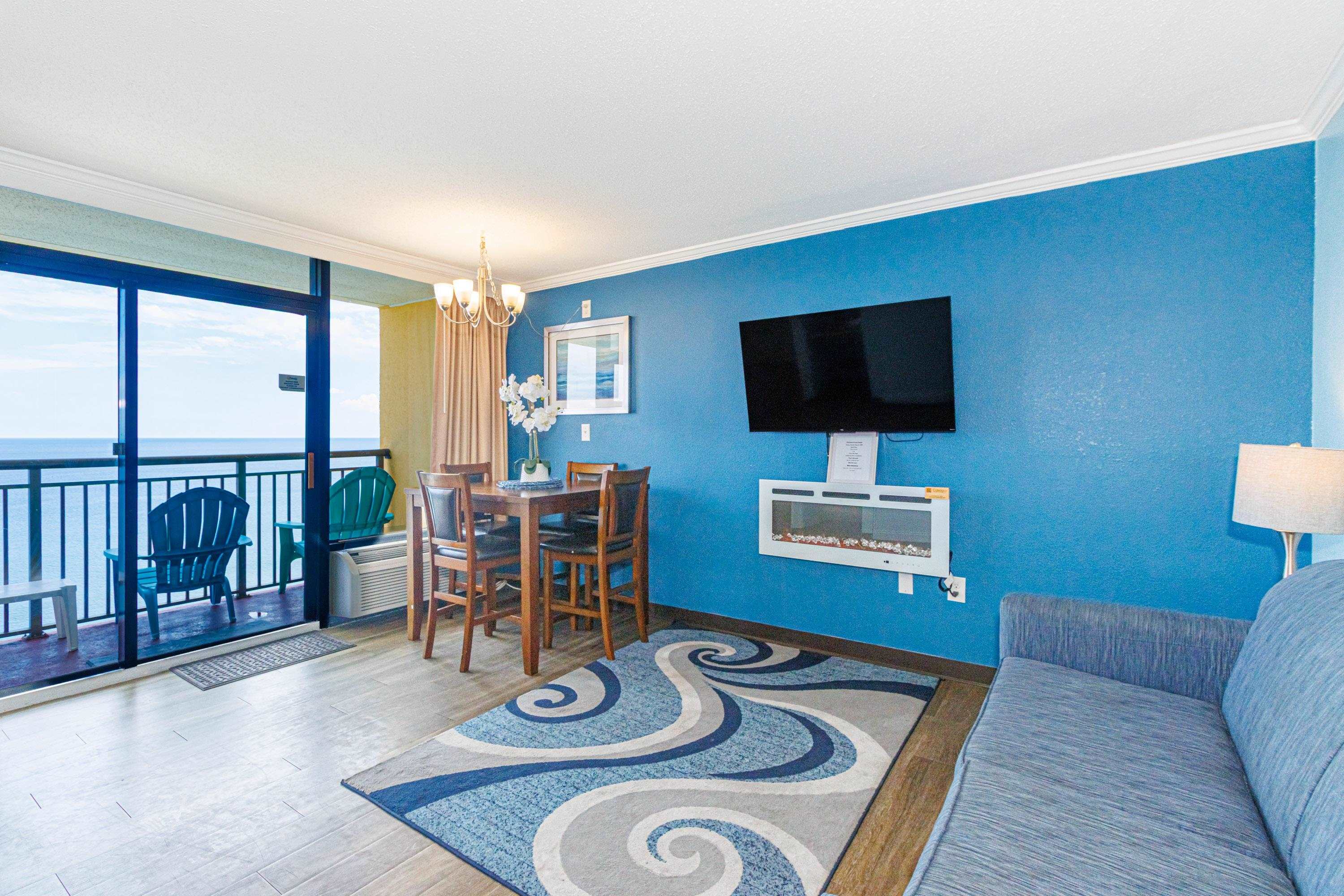 Looking for an amazing oceanfront condo, check out this top-floor, corner-unit true one-bedroom condo features one of the most desirable and hard-to-find layouts in the building. The unique floorplan offers a private bedroom, a spacious living area, and a rare separated kitchen, creating a more comfortable and functional feel than typical resort-style condos. Inside, the condo has been fully updated and tastefully furnished, featuring luxury vinyl plank flooring, granite countertops in both the kitchen and bathroom, a cozy fireplace, and stylish newer furnishings throughout. From the living room, you'll enjoy sweeping views down the Myrtle Beach coastline, with the added privacy and natural light that only a corner unit can provide. Whether you're looking for a vacation home, a high-performing rental property, or even an oceanfront primary residence, this condo is completely turnkey and ready to enjoy. Located on the quieter northern end of Myrtle Beach, amazing location for walking the beach, right beside the Golden Mile where you can walk in front of the less crowded oceanfront homes. Caravelle Resort offers a wide range of amenities including indoor and outdoor pools, a lazy river, a kids' splash area, an onsite restaurant and bar, laundry facilities, and a parking deck conveniently attached to the building. If you've been waiting for a rare top-floor corner layout at Caravelle, this is one you don't want to miss.