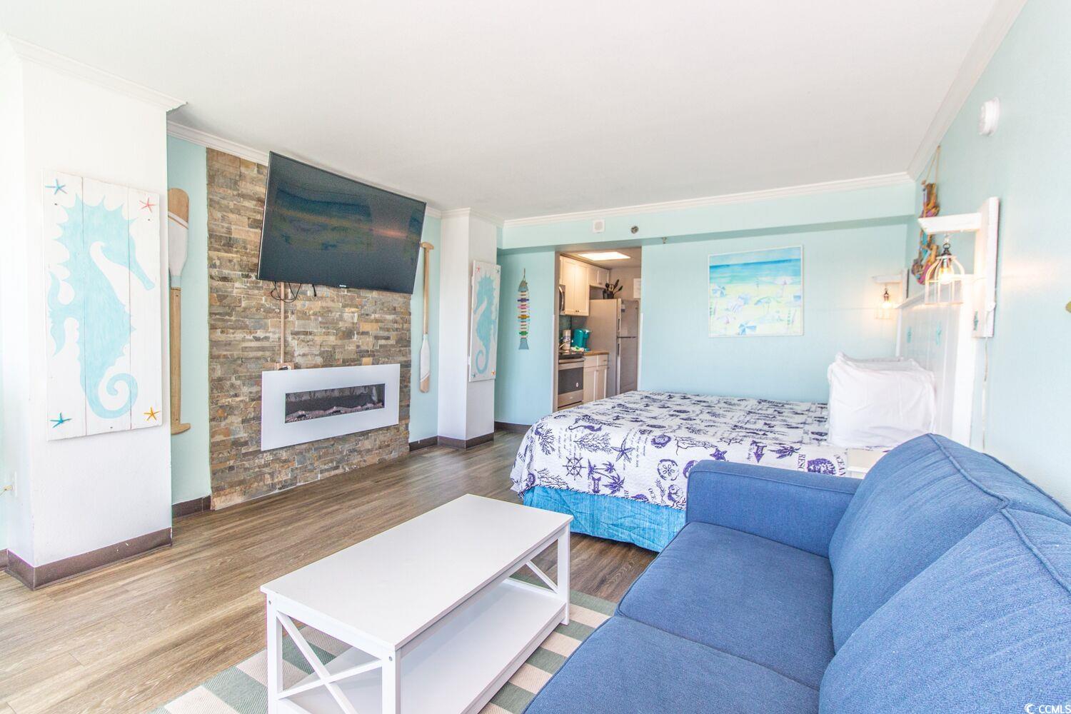 Oceanfront Studio with Stunning Views - Caravelle Resort Enjoy breathtaking oceanfront views from this beautifully updated 4th-floor studio at the highly sought-after Caravelle Resort. This condo has been completely renovated and tastefully furnished, high end balcony teak furniture, modern finishes throughout -- including LVP flooring, a custom rock wall with fireplace, and granite countertops in both the kitchen and bathroom. The kitchen is fully equipped with a full-size refrigerator, stove, and microwave, offering all the comforts of home. Conveniently located on a parking-level floor for easy access, and just a short distance from the indoor pools on the 7th floor, this unit blends comfort and convenience perfectly. The Caravelle Resort, situated on 69th Avenue North in Myrtle Beach, offers a prime location that's close to dining, shopping, and entertainment -- yet just far enough north to enjoy a quieter, more relaxed atmosphere. Resort amenities include multiple indoor and outdoor pools, lazy river, fitness center, arcade, ice cream shop, restaurant, and bar -- everything you need for a fun and memorable beach experience. With a solid rental history and a great price for an oceanfront condo, this unit is the perfect opportunity for both investors and vacationers looking to own a piece of Myrtle Beach paradise