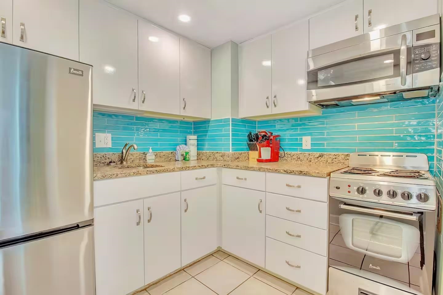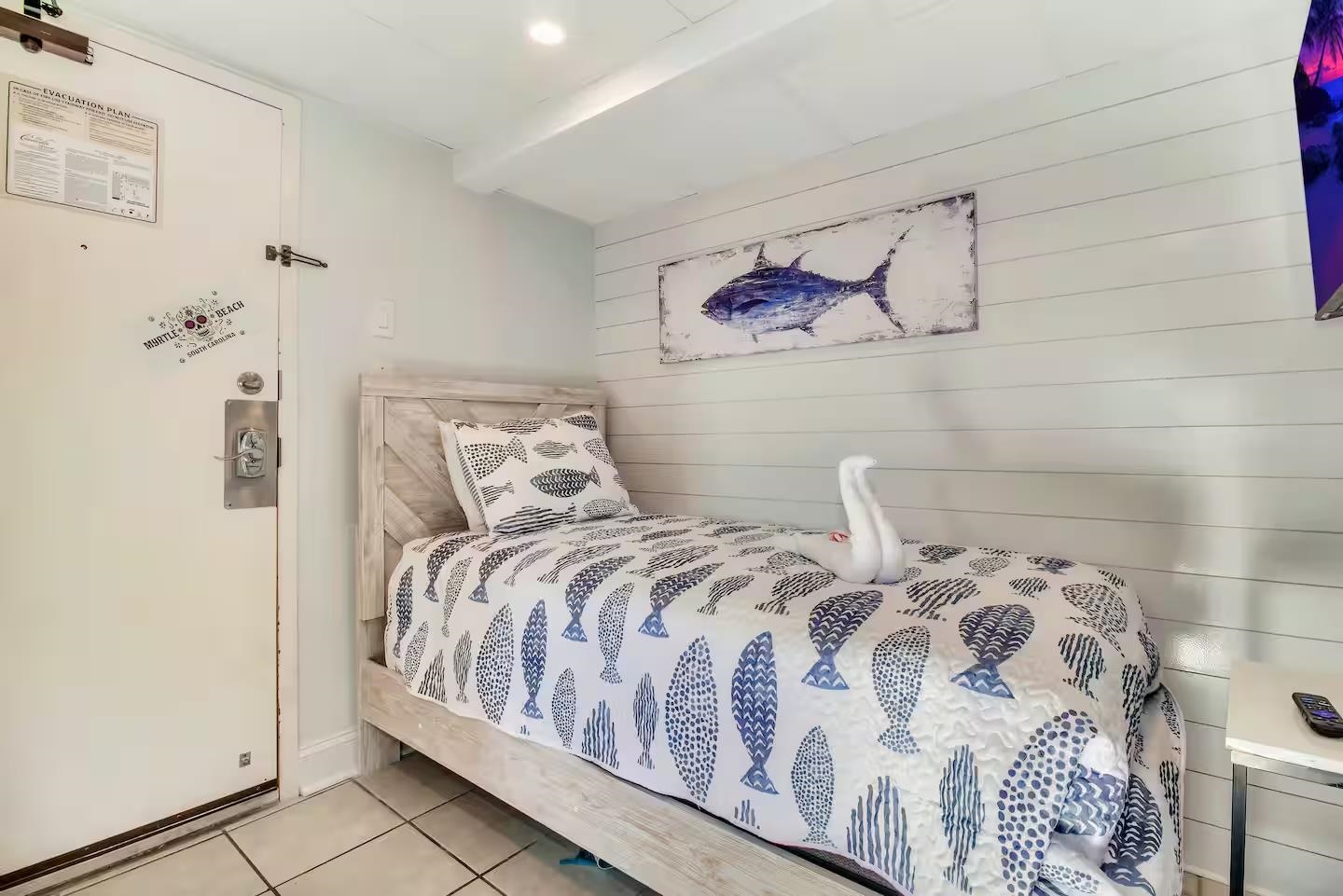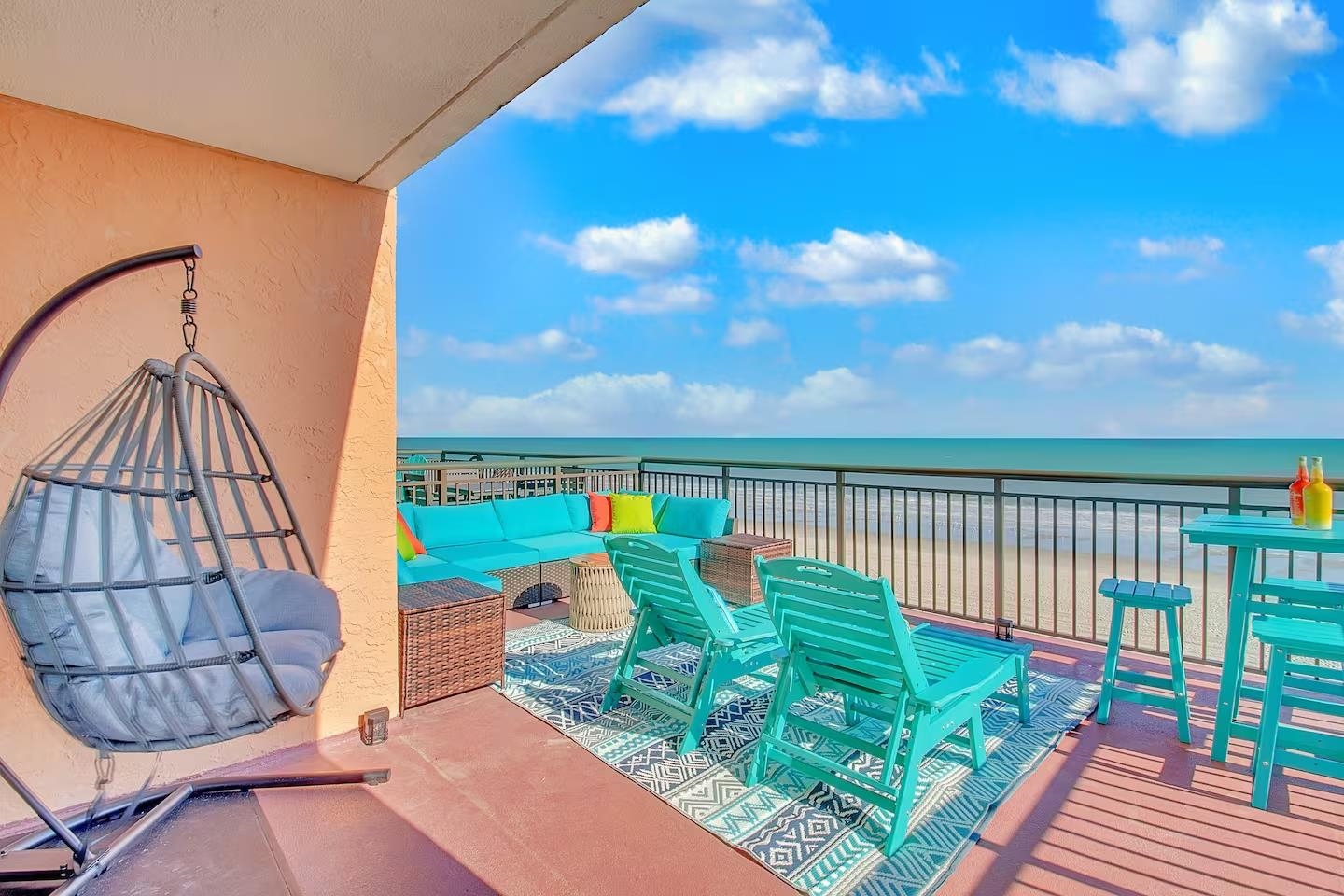 One of the most unique oceanfront properties in town. This corner end unit has one of the largest sun deck balconies on the coast. This is the only true one bedroom on this floor and the balcony is larger than all of the other studios on this famous 5th floor at Caravelle. This spectacular unit was just updated with high end LVP flooring with an oversized true one bedroom with a rock tile fireplace and view all the way down the coast from the bedroom window. The owner added a separate sleeping area with shiplap and a twin bed and tv near the entrance and also added and extra closet. The Living room was extended and larger than all the other one bedrooms with this layout as the murphy bed wall was removed with shiplap and can lighting making it feel like a true large living room. There is a nice full size kitchen with granite, backsplash, and stainless-steel appliances. The super-sized amazing deck with that southern coastal view is like nothing else you have ever seen. It is equipped with a new wrap around section sofa, 2 loungers and a high top 4 seating dining seat. This one of a kind unit will not last long as properties like this rarely comes up for sale. Located on the quieter northern end of Myrtle Beach, amazing location for walking the beach, right beside the Golden Mile where you can walk in front of the less crowded oceanfront homes. Caravelle Resort offers a wide range of amenities including indoor and outdoor pools, a lazy river, a kids' splash area, an onsite restaurant and bar, laundry facilities, and a parking deck conveniently attached to the building. If you've been waiting for a rare corner layout at Caravelle, this is one you don't want to miss.