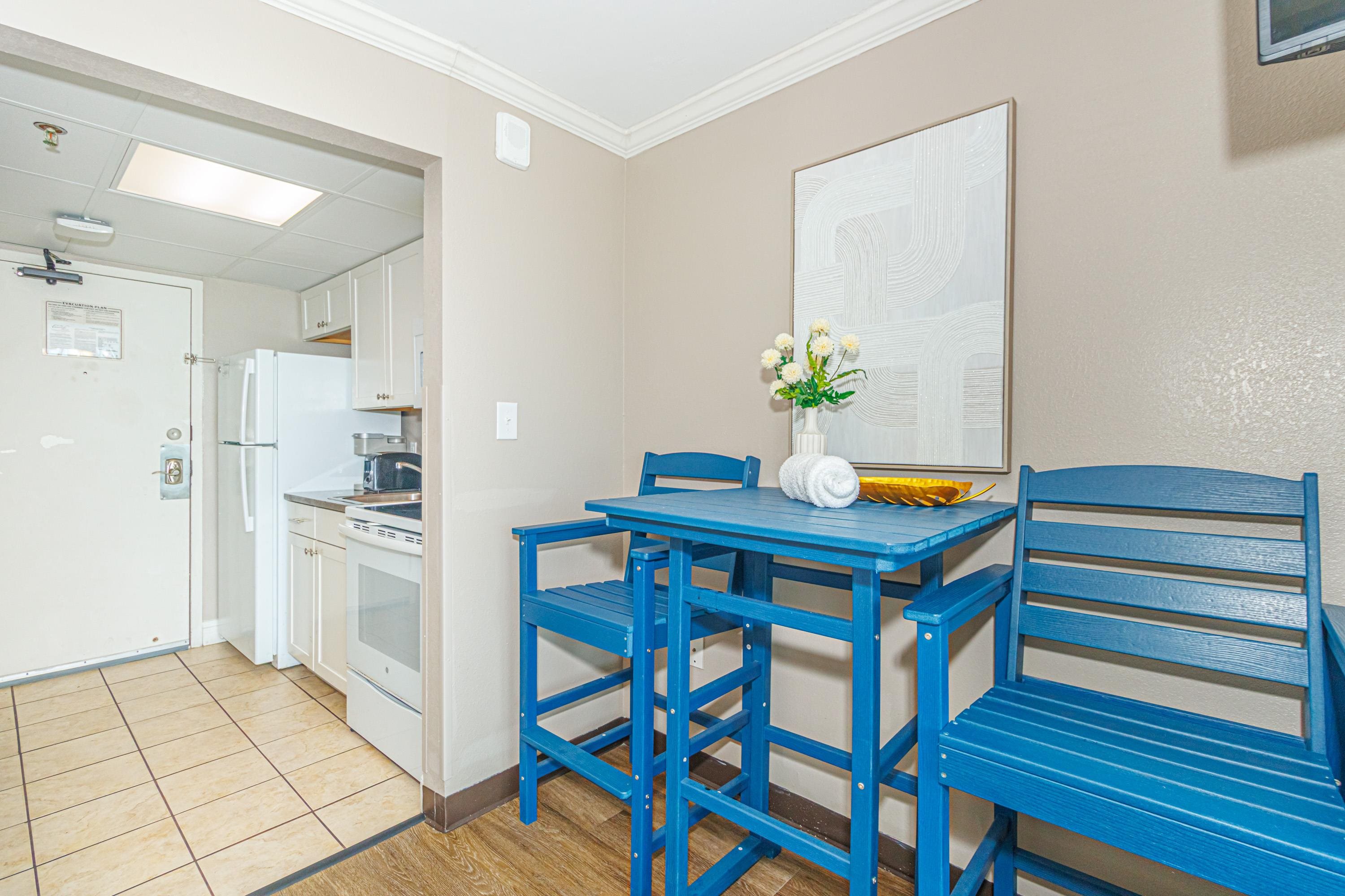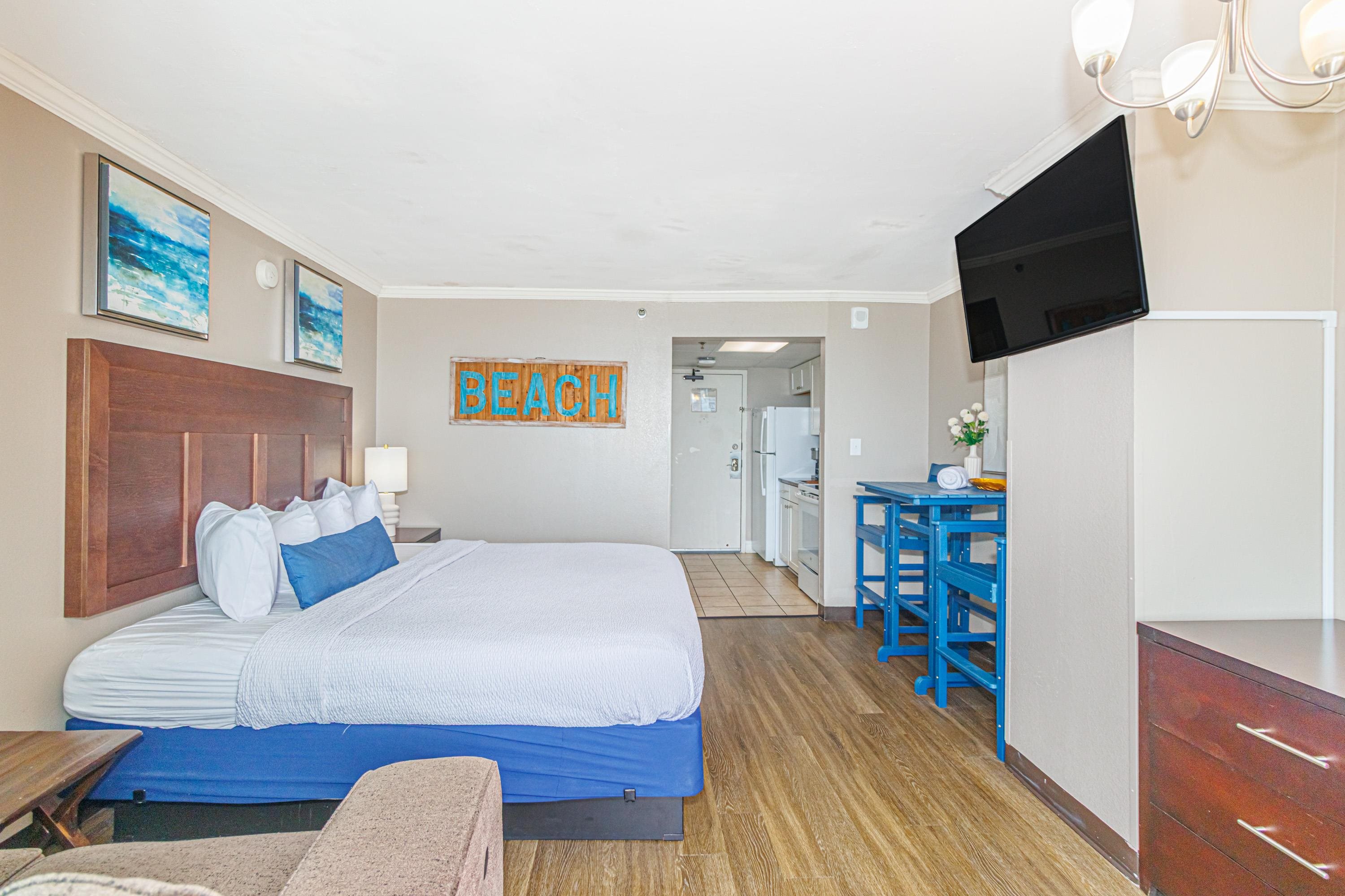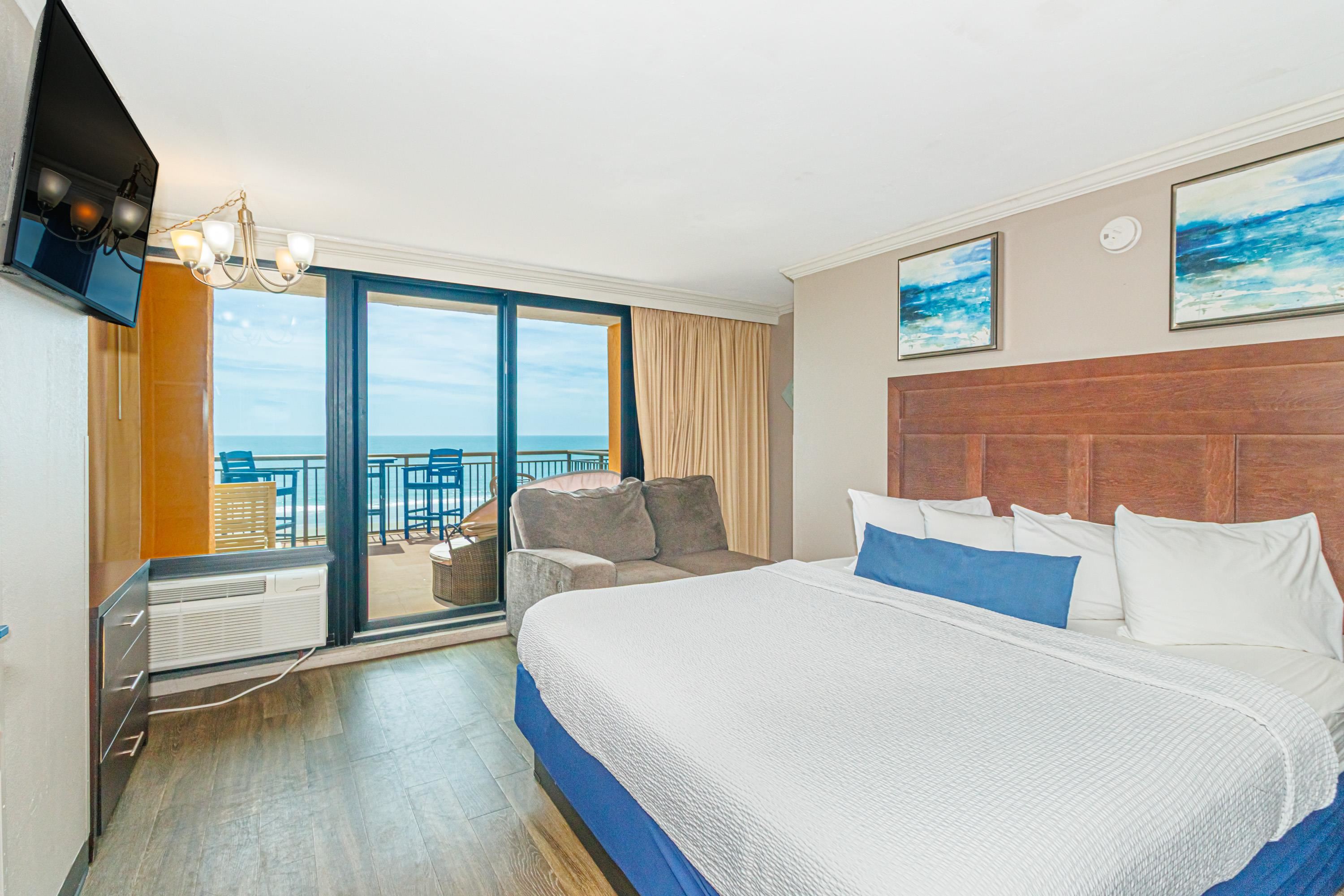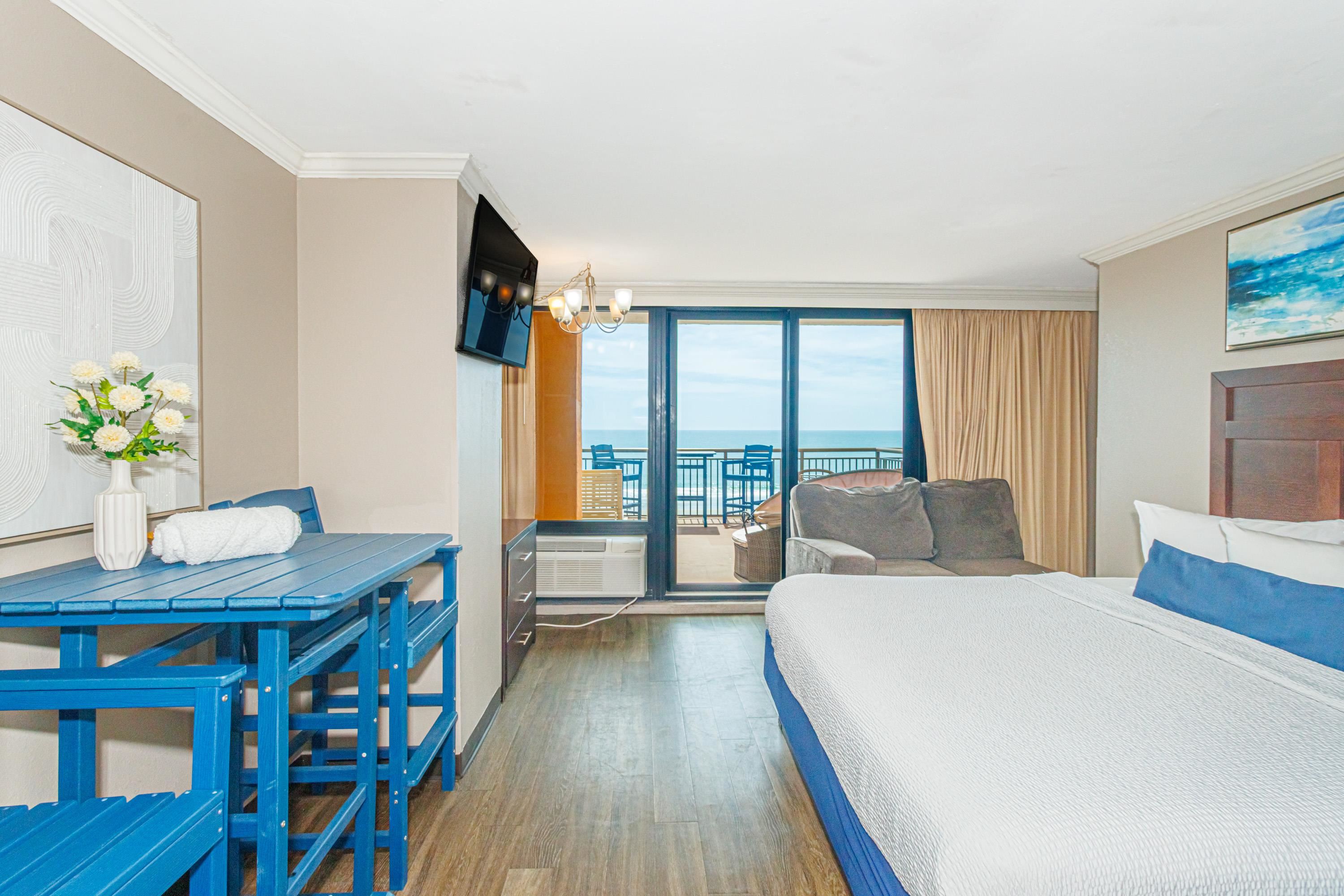 One-of-a-Kind Oceanfront Retreat at The Caravelle Discover one of Myrtle Beach's most coveted condo styles -- the exclusive 5th-floor sundeck units at The Caravelle Resort. These rarely available homes are known for their unbeatable rental performance and unforgettable oceanfront views. Step inside this fully furnished, tastefully updated condo featuring luxury vinyl plank flooring, smooth ceilings, a king-size bed, and a sleeper sofa to accommodate extra guests. The kitchen and bath showcase sleek granite countertops for a clean, modern touch. The highlight of this property is the oversized private balcony -- a true outdoor living space unlike anything else on the Grand Strand. Enjoy ocean breezes from your personal daybed, host dinners at the outdoor table, or simply unwind while taking in the endless views of the Atlantic. Nestled on quiet 69th Avenue North, The Caravelle offers the perfect blend of relaxation and convenience--close to Myrtle Beach's best dining, entertainment, and shopping yet tucked away from the bustle of downtown. Resort amenities include a fitness center, multiple pools and water attractions, an arcade, ice cream shop, and an on-site restaurant and bar. Don't miss this chance to own a standout oceanfront condo with one of the most impressive balconies on the beach!