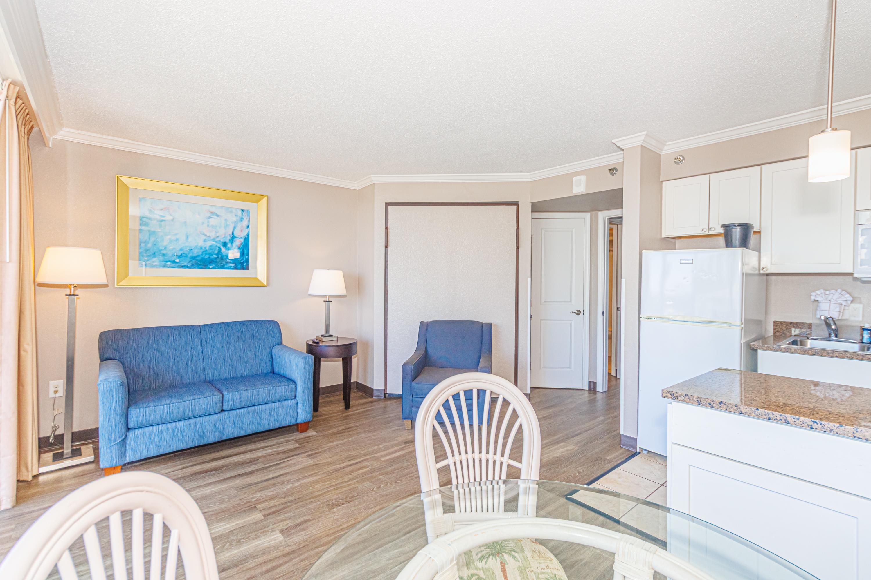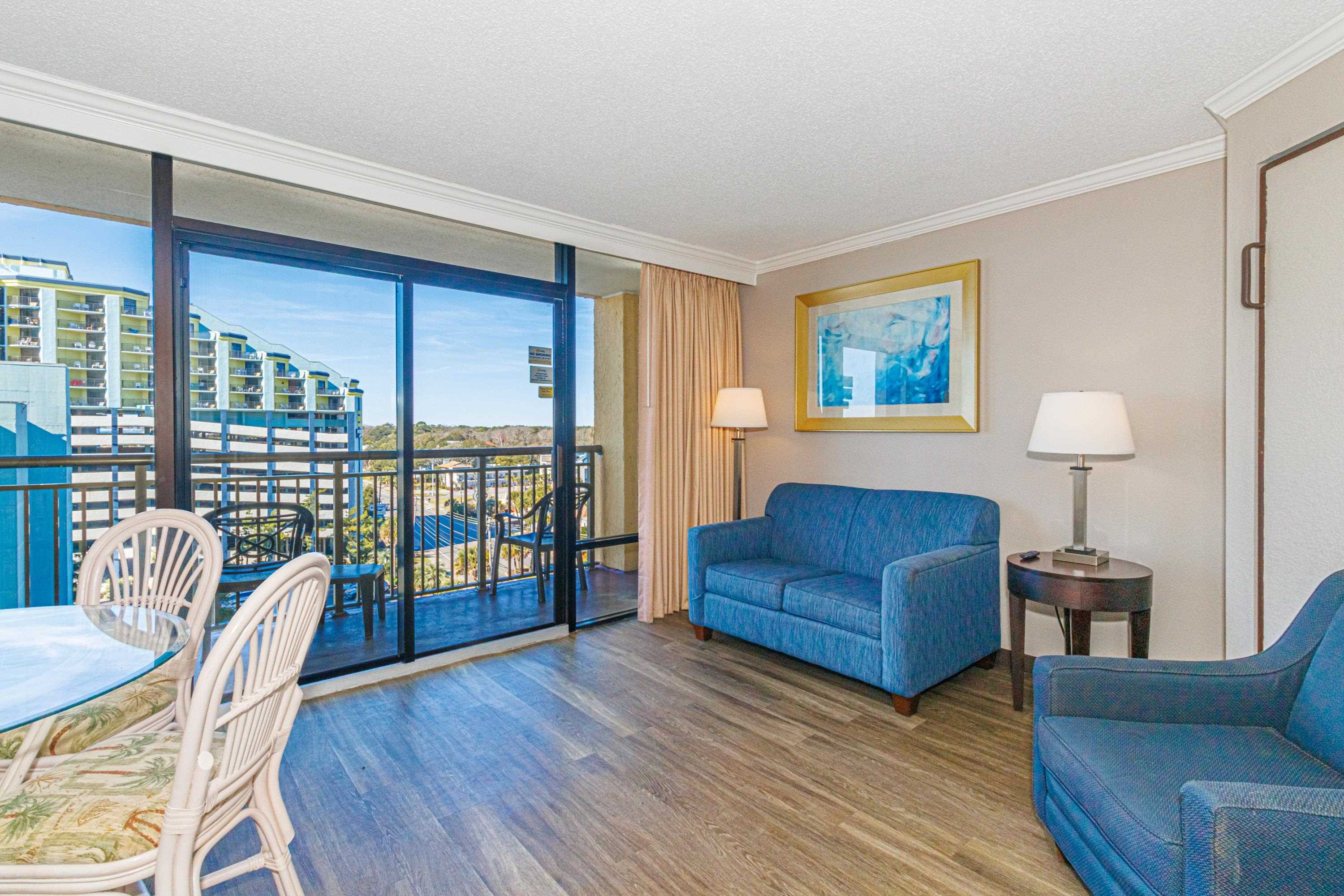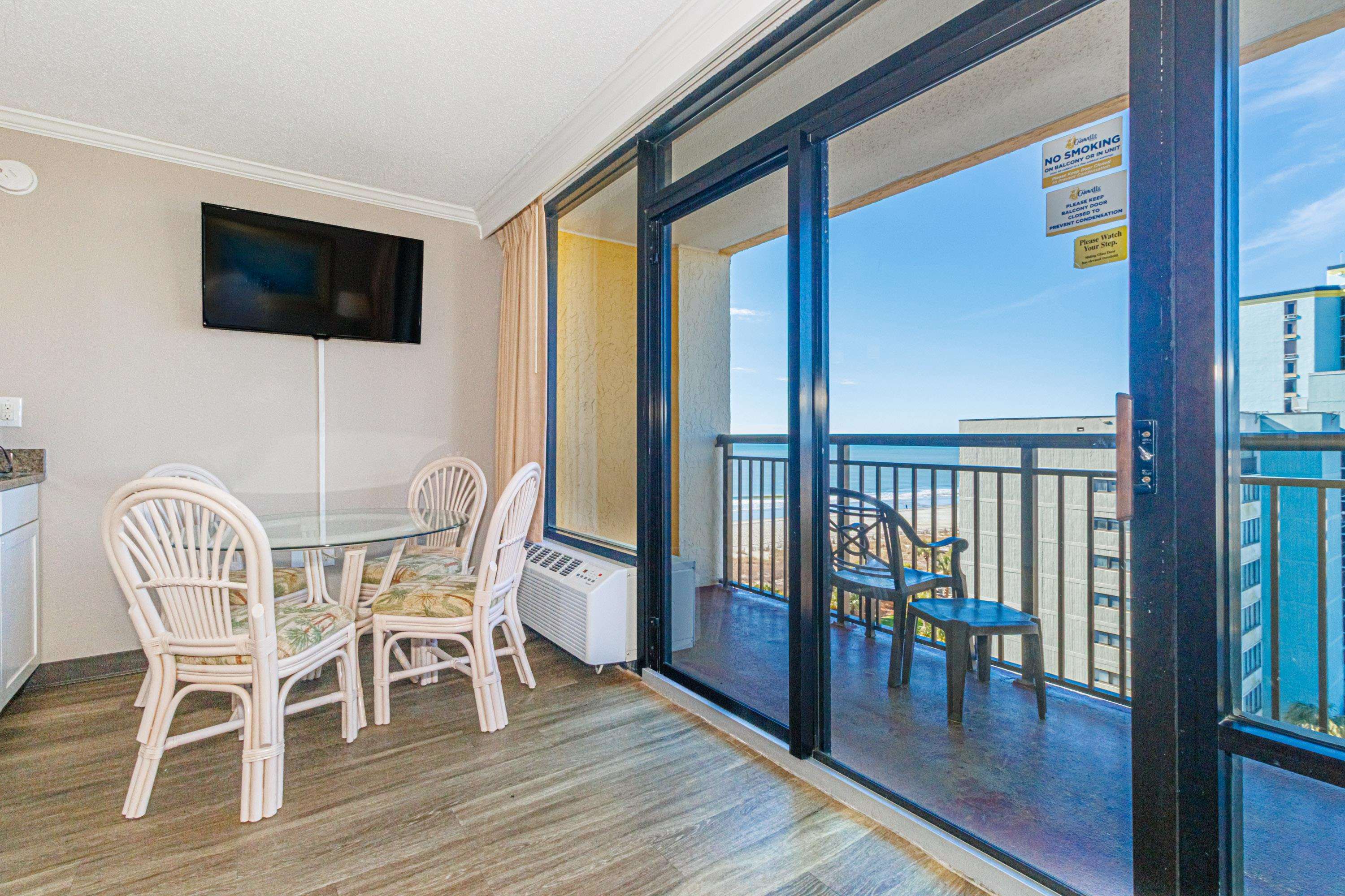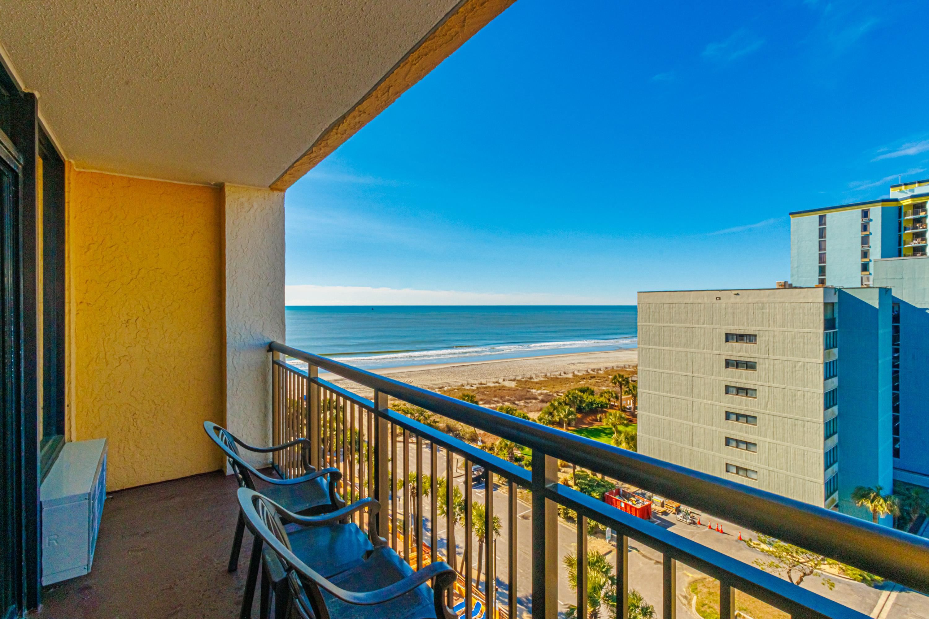 Well-priced oceanview 1BR in the popular Caravelle Resort, ideally positioned on the southern side of the building for stunning ocean and sunset views from the 8th floor. This unit is exceptionally clean, well-maintained, and completely turnkey--ready for immediate enjoyment or rental. Featuring durable LVP flooring and granite countertops in both the kitchen and bath, the layout offers a desirable separation between the private bedroom and the main living area. The open living room and kitchen flow seamlessly onto a spacious balcony, perfect for taking in the coastal views. A unique bonus is the oversized closet with direct bathroom access from the living area--allowing guests to use the bathroom without passing through the bedroom. Located on 69th Ave N in the quieter northern end of Myrtle Beach, Caravelle Resort offers an impressive lineup of amenities including indoor and outdoor pools, on-site dining, and more--all just steps from the beach. An excellent opportunity to secure a well-positioned, income-producing property just in time for the spring and summer rental season.