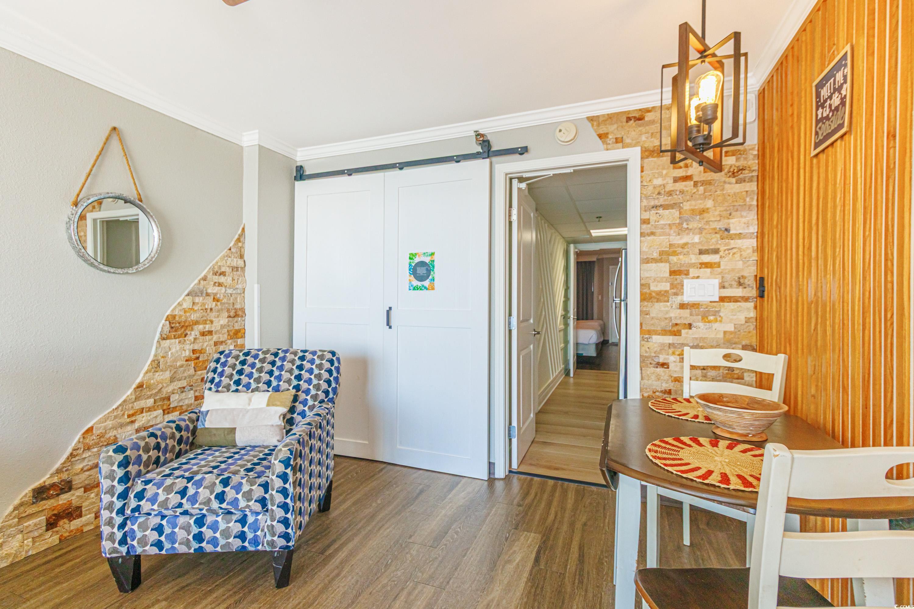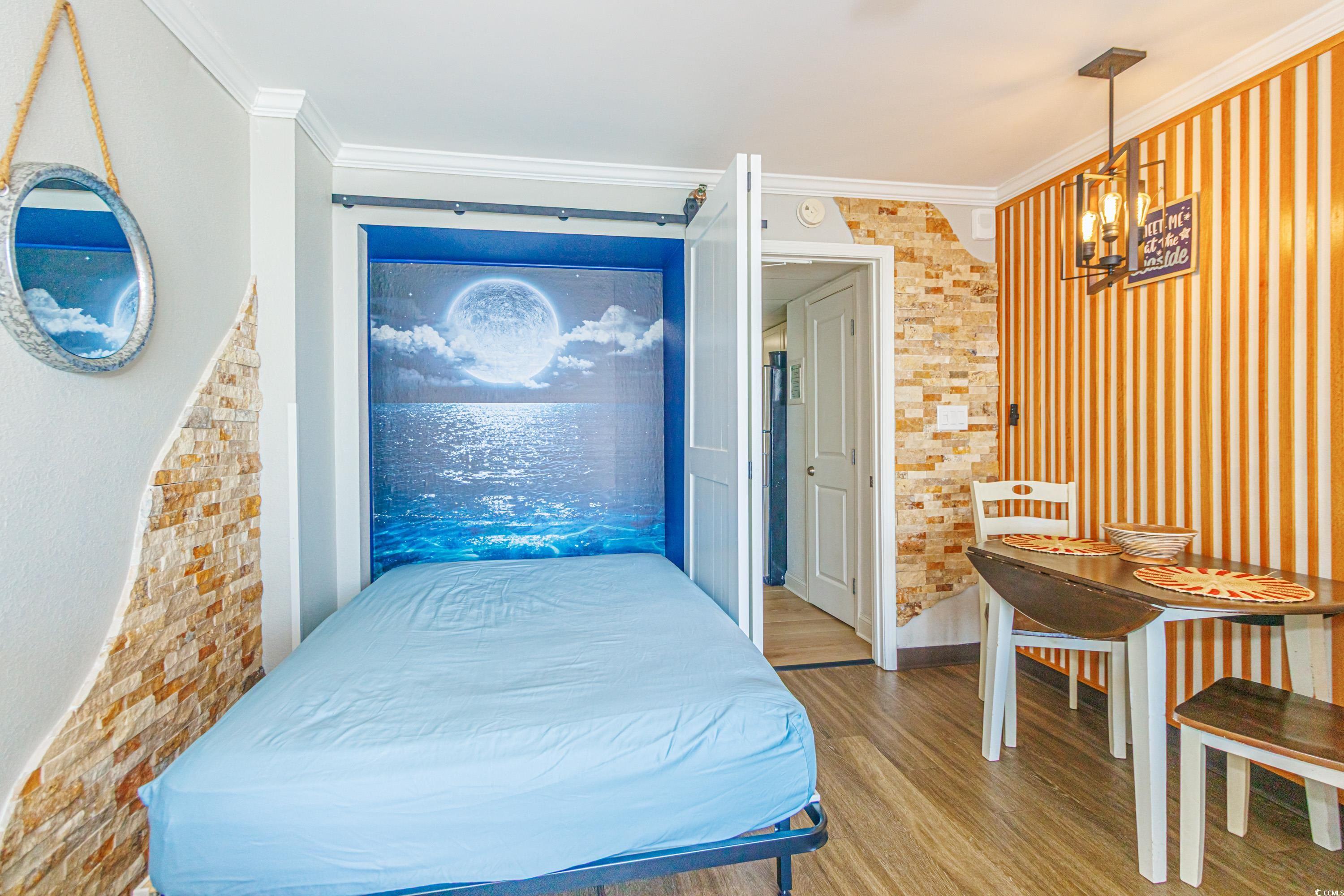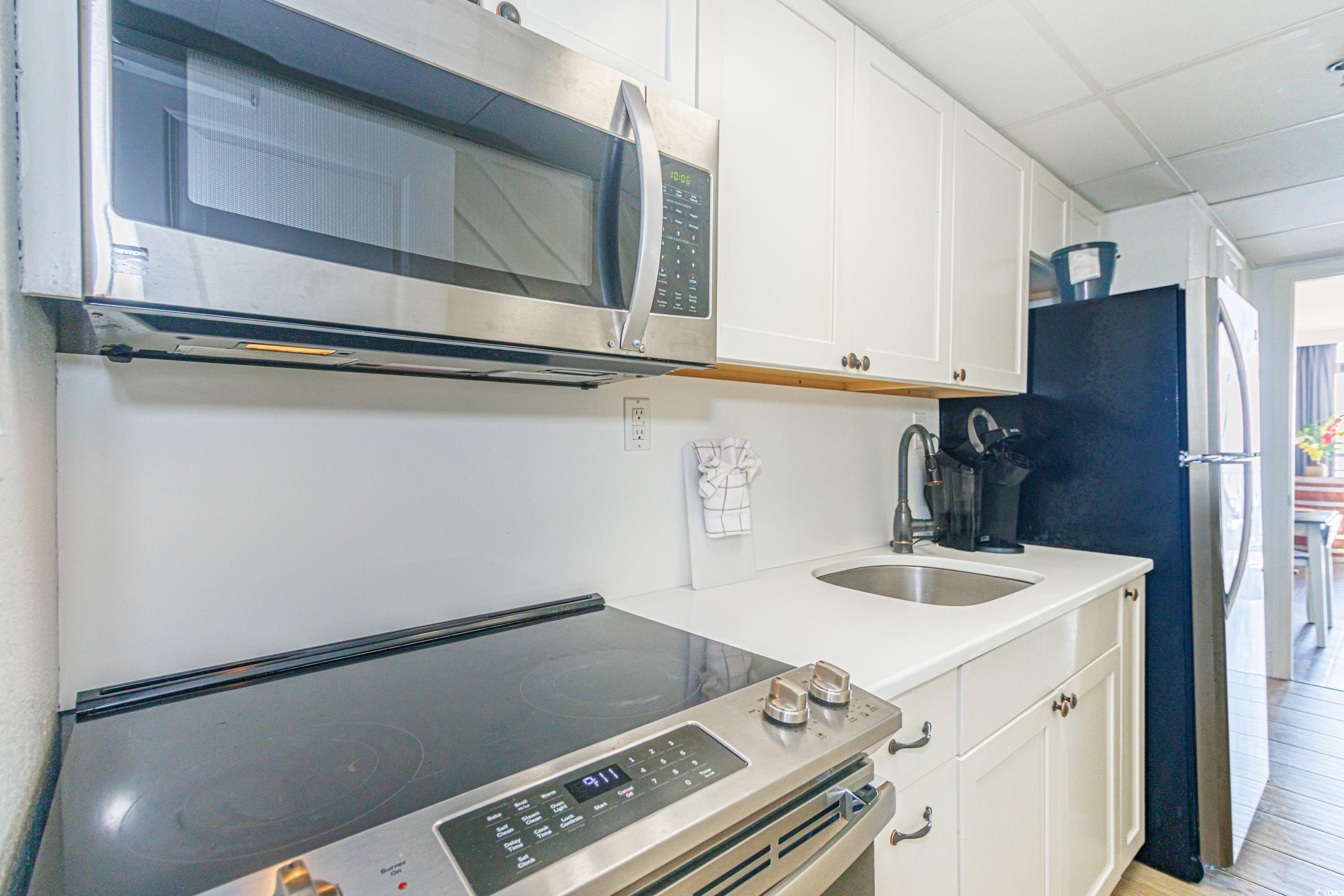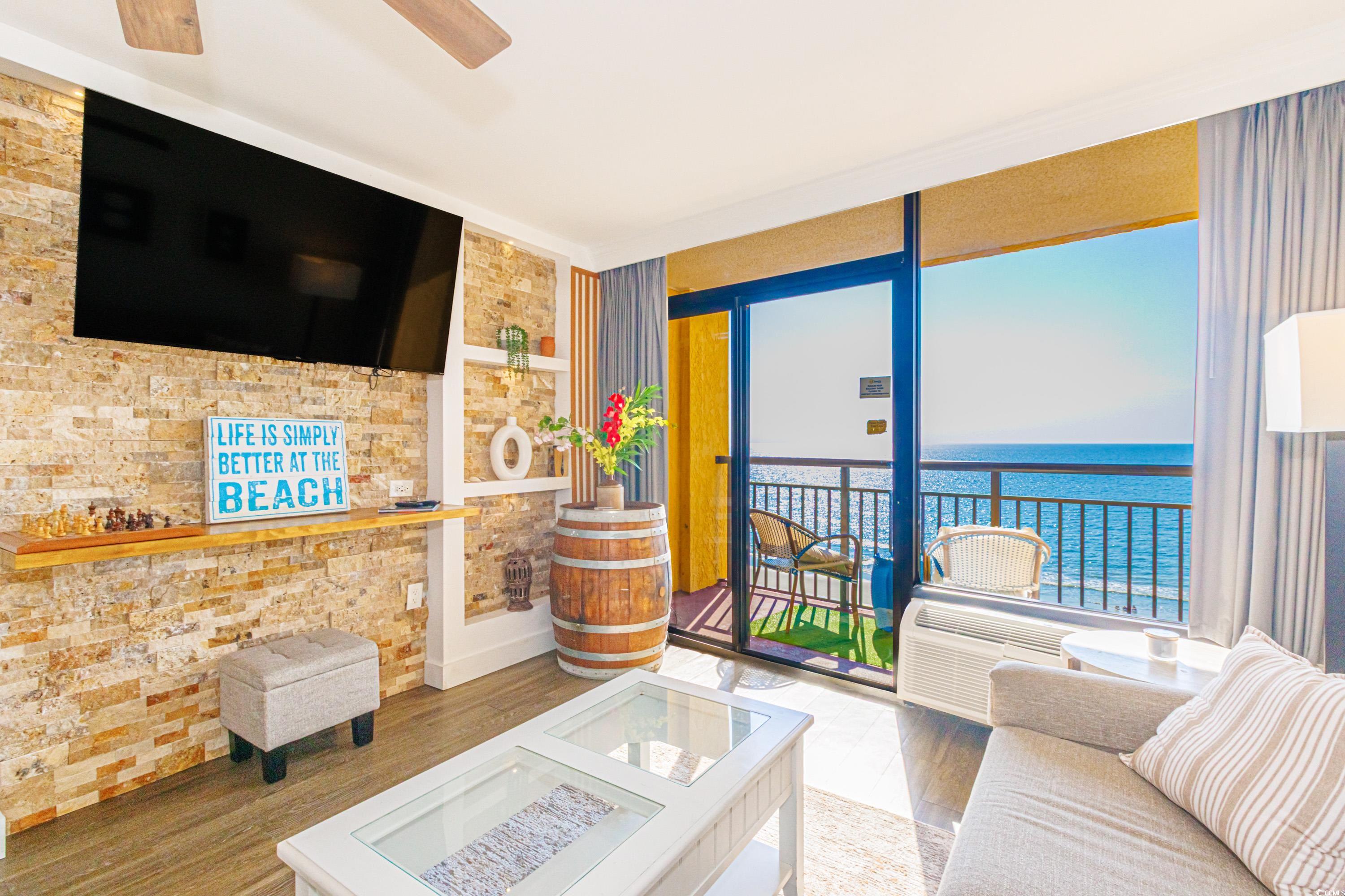 This is not your typical oceanfront condo -- step inside and you'll immediately notice the thoughtful upgrades and custom finishes that set this unit apart. The living space features accent rock walls, built-in shelving, and a modern design touch with updated fixtures and accent walls in both the living room and kitchen. The kitchen has been completely reimagined with sleek cabinets, quartz countertops and backsplash, and stainless steel appliances. The bathroom showcases a custom walk-in shower and stylish finishes for a spa-like feel. Sold fully furnished, this condo also includes curated decor and details that enhance both comfort and rental appeal, making it a strong investment and a standout vacation retreat. Located on the quieter north end of Myrtle Beach at 69th Ave N. The Caravelle offers a relaxed setting while keeping you just minutes from all the area's attractions. Resort amenities include onsite dining, multiple pools, a lazy river, kiddie splash zone, and more. Setup your showing today!!