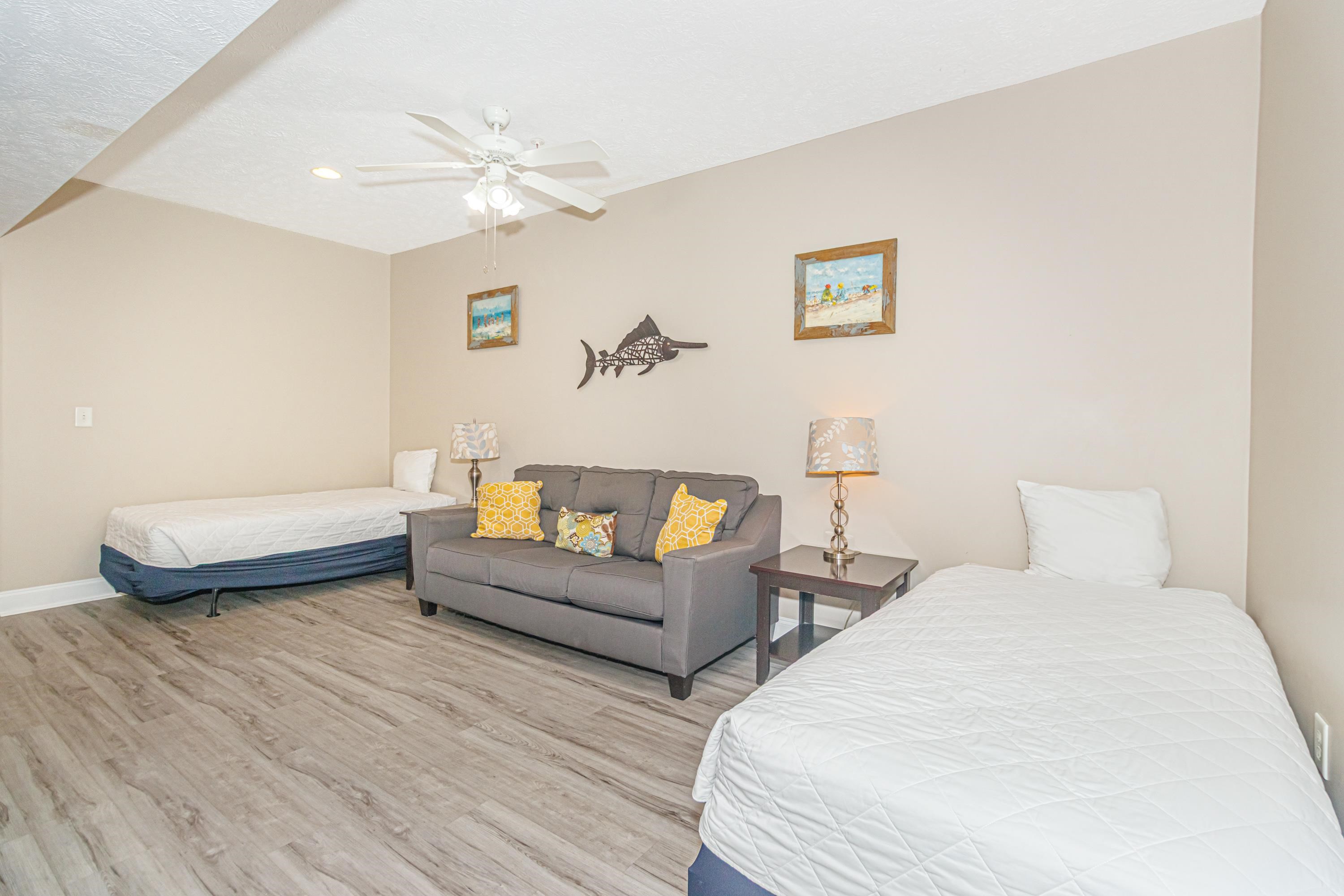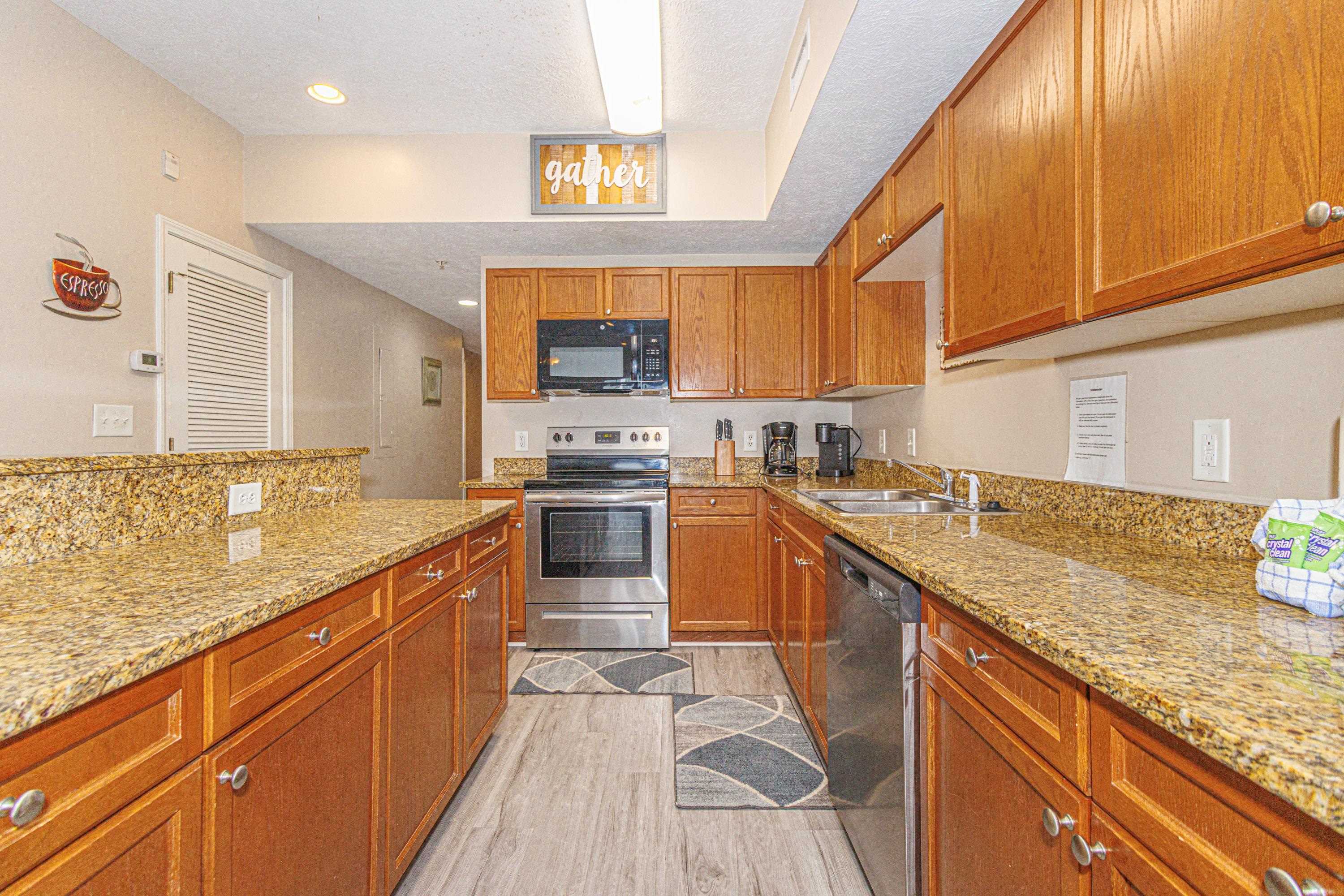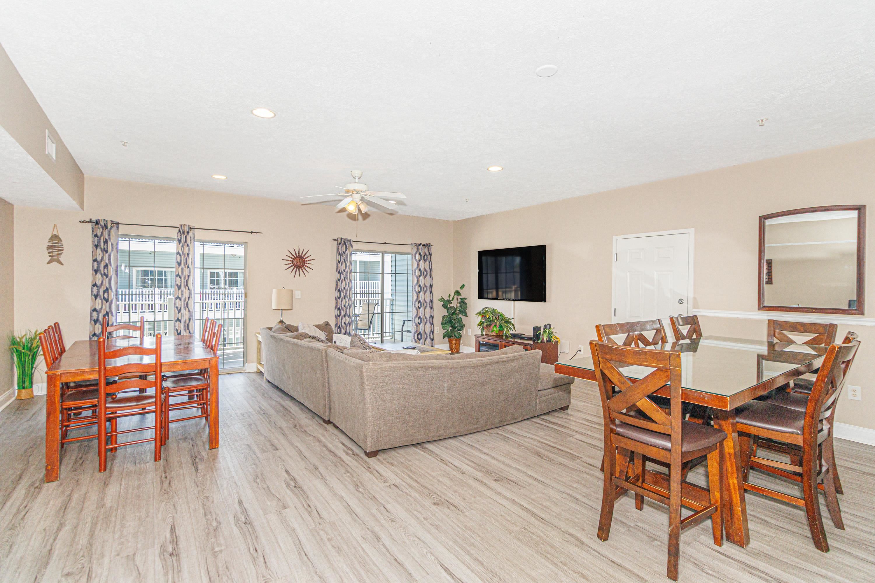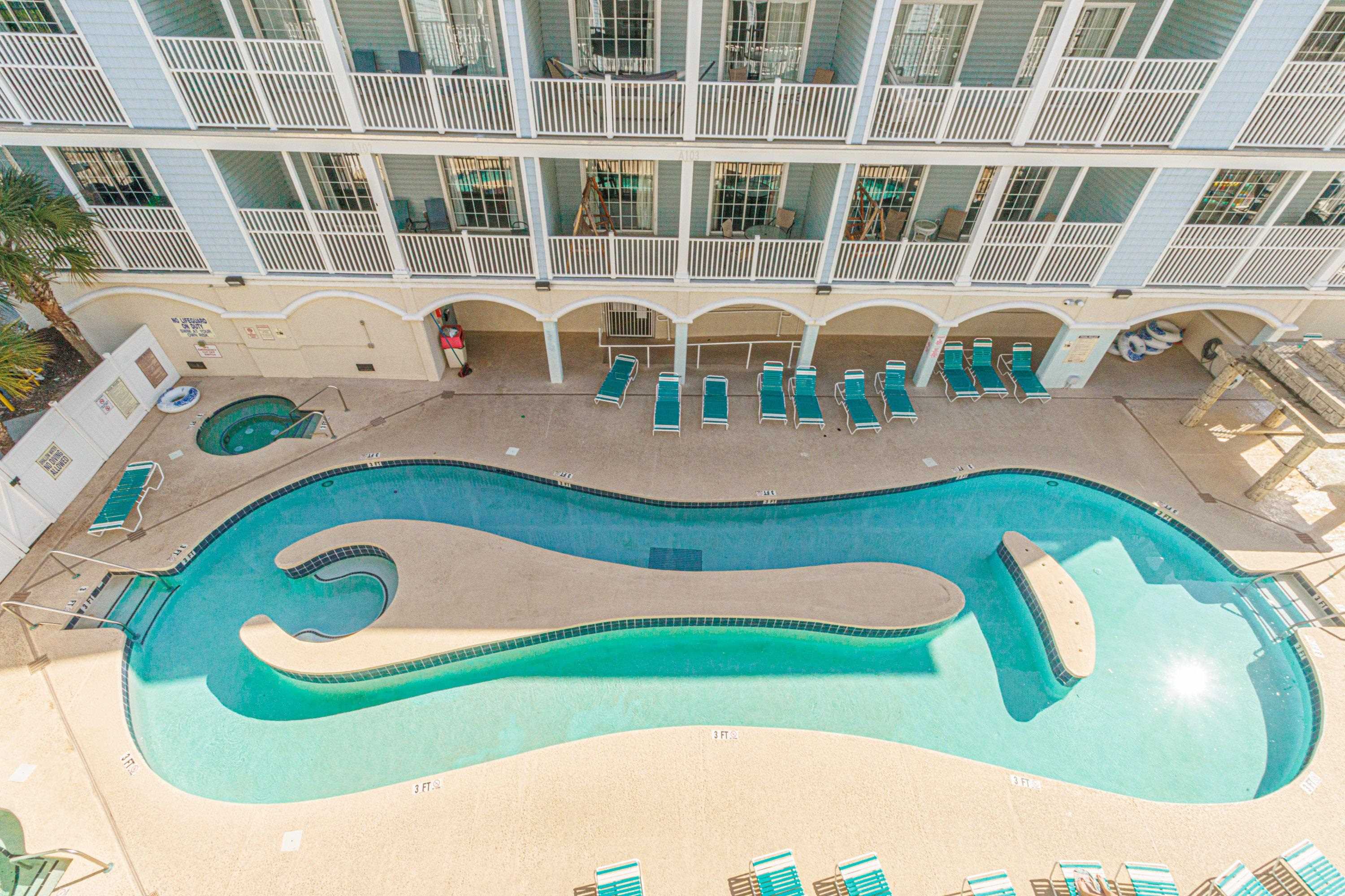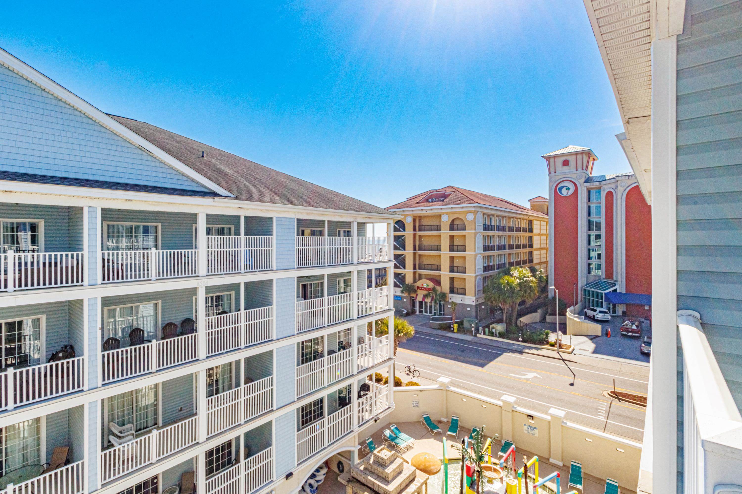 Spacious and income-producing, this 6-bedroom, 5-bath condo at Myrtle Beach Villas offers over 3,100 heated square feet across two levels of living space--an extremely rare find this close to the ocean. Designed to accommodate large groups, the layout comfortably sleeps 20+ guests and features two private balconies overlooking the pools and with a peak of the ocean. Inside, the condo includes LVP flooring, granite countertops in the kitchen, and comes fully furnished--making it a true turnkey investment opportunity. Located just steps from the beach on 7th Avenue South, Myrtle Beach Villas places you within easy walking distance of Family Kingdom, restaurants, nightlife, and the best attractions along the Grand Strand. The resort itself offers multiple water amenities, ample parking, and large condo layouts that have made the building a consistent performer for vacation rentals. Opportunities to own a property of this size and location at this price point are hard to come by--secure it now and start capturing peak summer rental income.