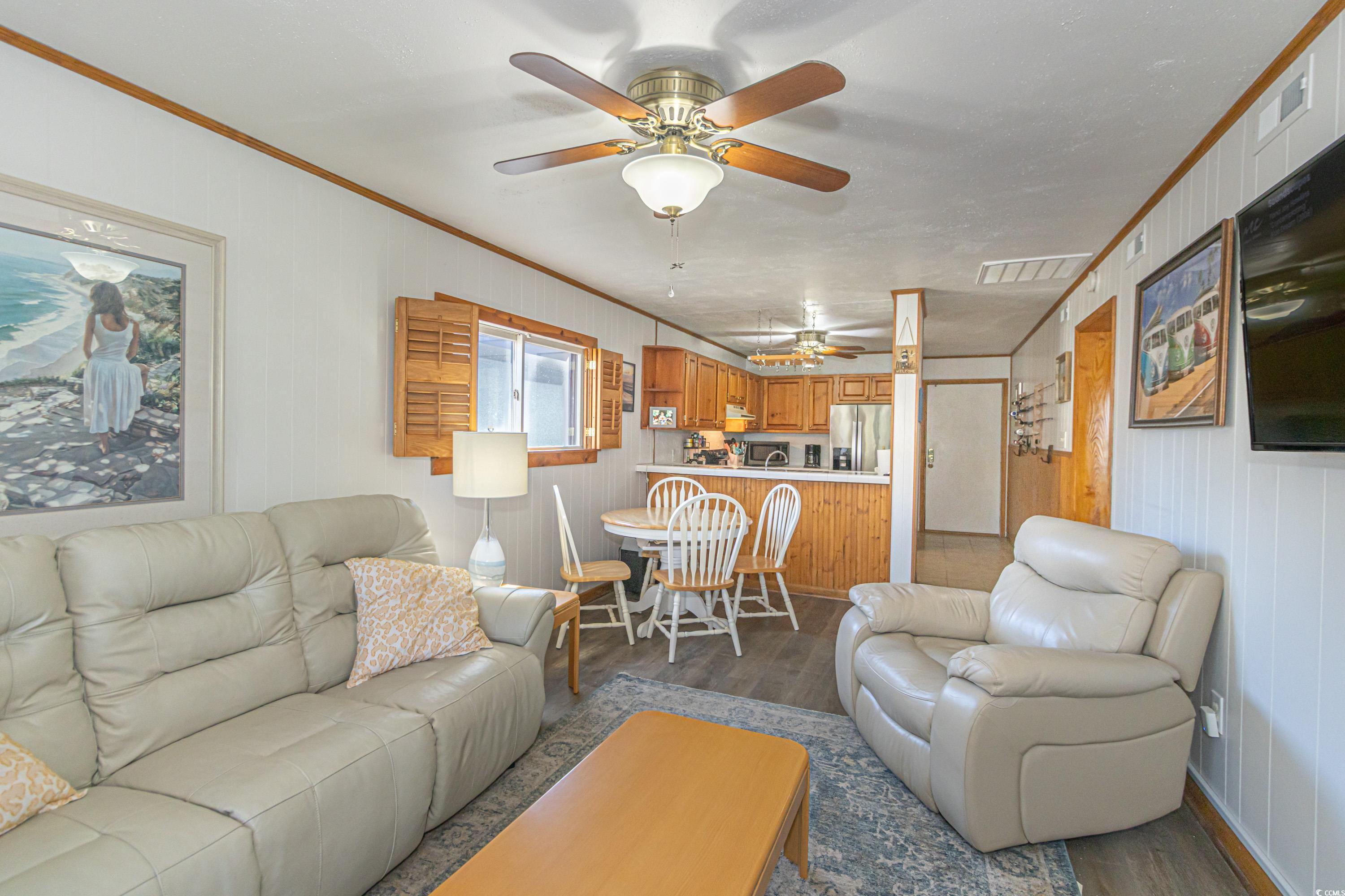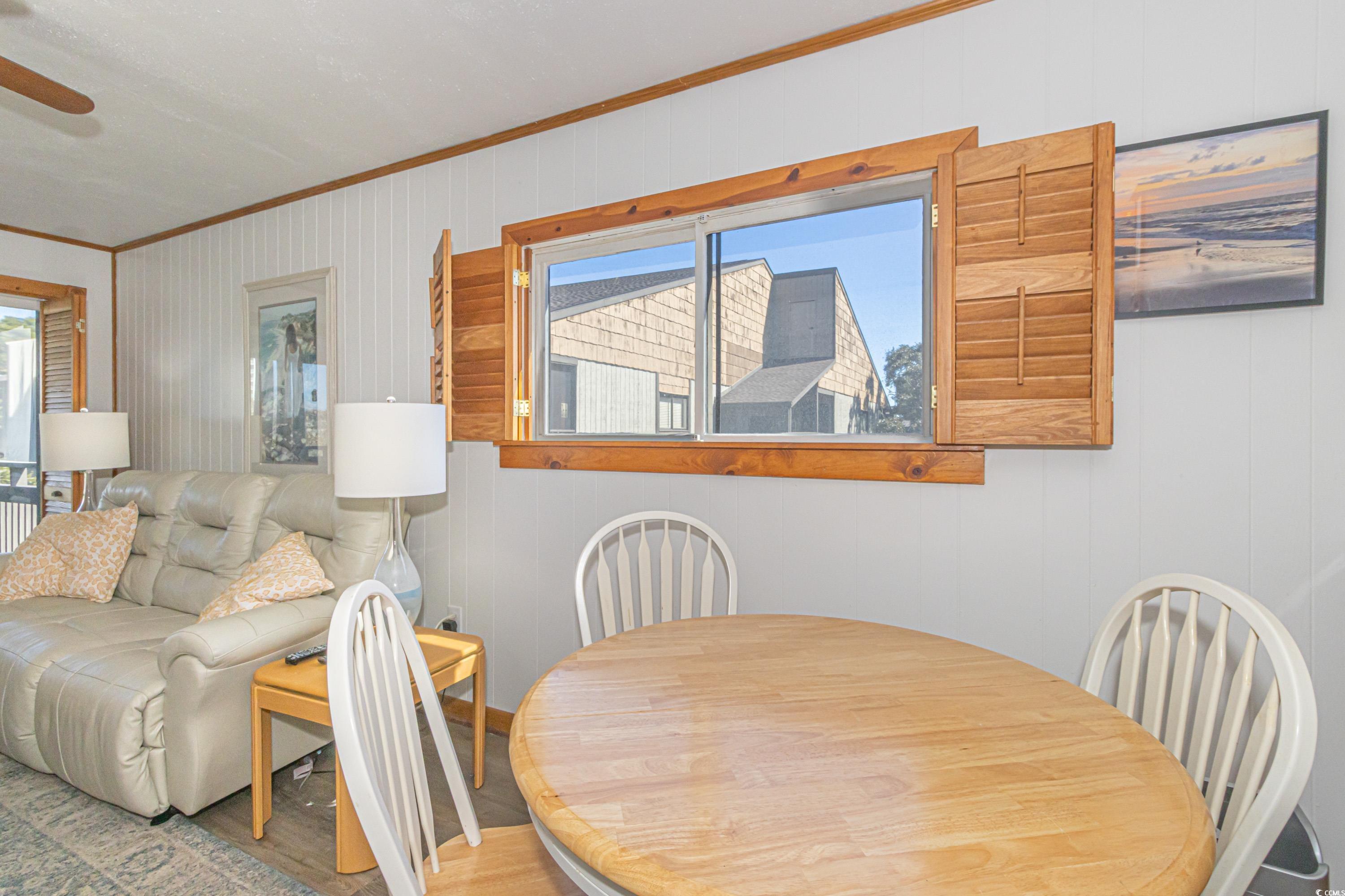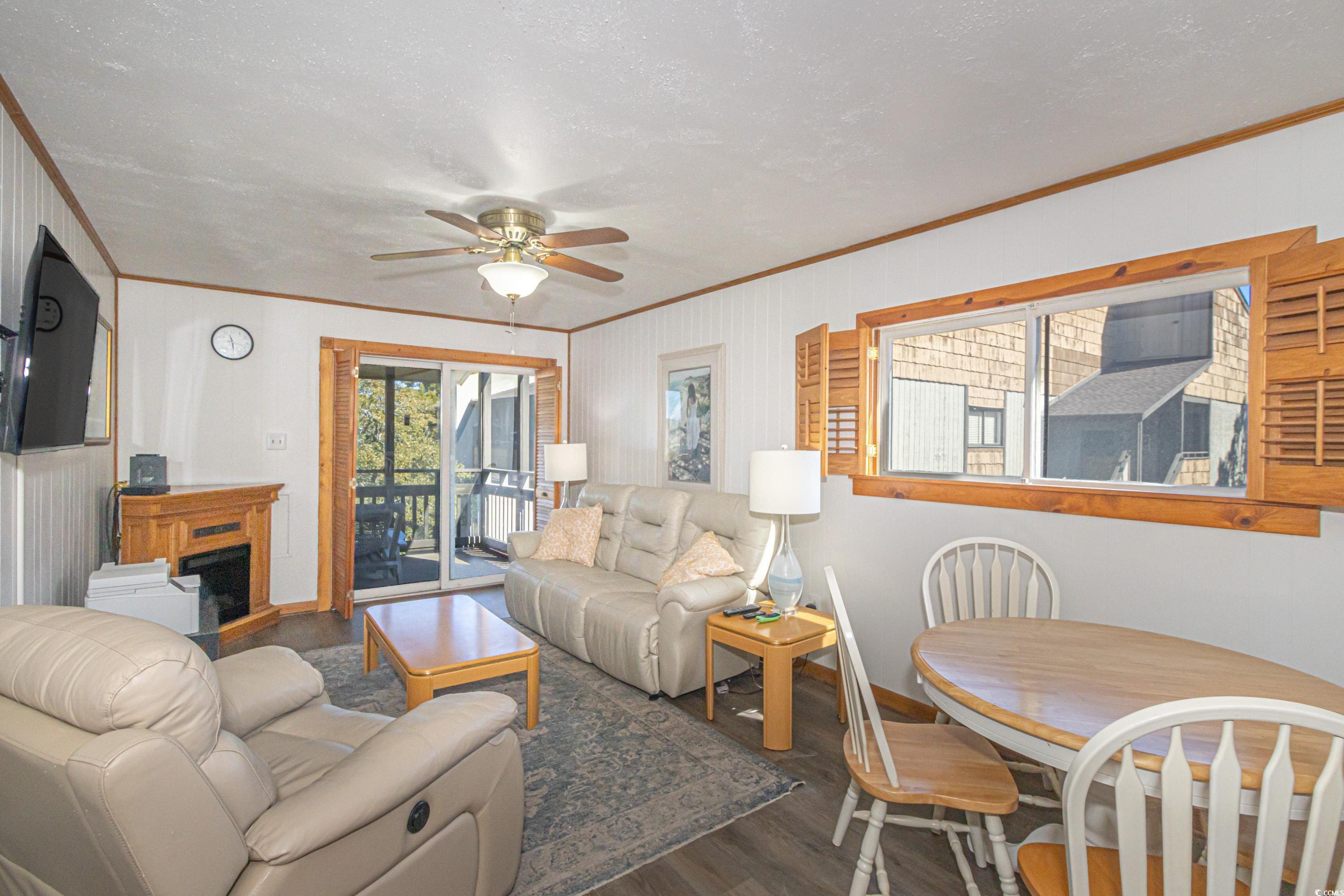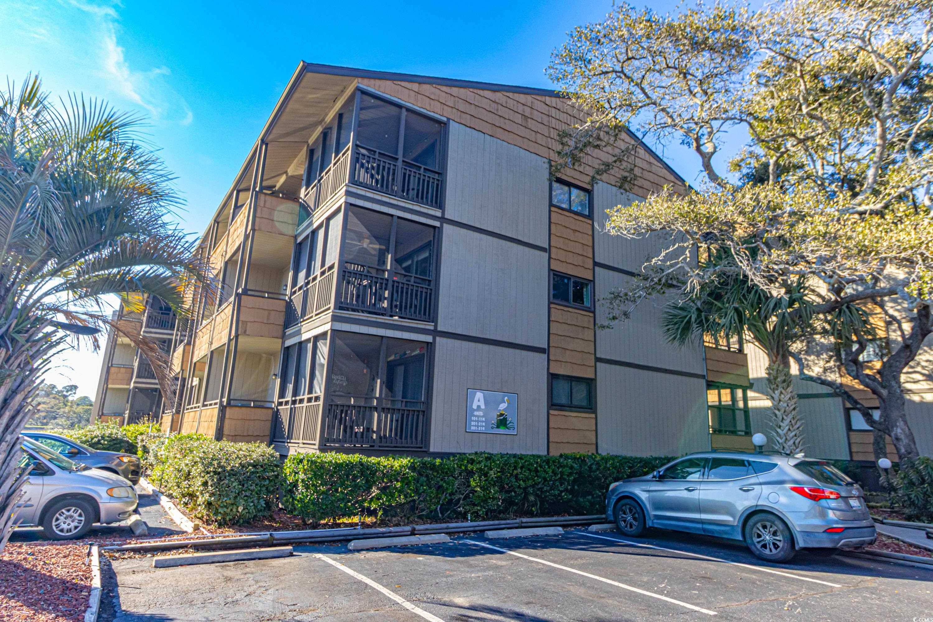 Welcome to this Beach condo, a golfers retreat in Mariners Cove in the highly sought-after Arcadian Shores area. This quaint 2 BR 2 BA corner unit with cedar wood plantation shutters and cedar wood wall accents & extra windows give this condo incredible light, Main Suite offers a king size Sleep Number bed, full size washer and dryer, fully equipped kitchen and appliances, eating area, electric fireplace, reclining leather sofa and Chair, Nags Head Hammock furniture on screened in porch overlooking the Marsh & Dunes Club Golf Course where the PGA Golf Tournament is held, 2nd BR has This End Up solid wood bunk beds & a single bed. All furnishings convey with sale including, pictures, chairs, surfboard decor & fishing poles. Remote Thermostat. The HVAC including Air Handler were replaced with a RUDD high efficiency system in June 2020, water heater replaced February 2022, and LVP Flooring installed in 2021, The main bath walk in shower was installed December 2024, Roof replaced in 2023. The condo also conveys with Hurricane Shutters for each patio door to deck. Mariners' Cove amenities include outdoor pool, BBQ area & a club house. Short walk to the beach, Ocean Annie's Beach Bar, Entertainment, Tangier outlet shopping, Barefoot Landing, restaurants, and Golf. Motivated Seller relocating. Make this quaint condo your Beach Getaway, 2nd home or investment property just in time for the 2025 Peak season.
