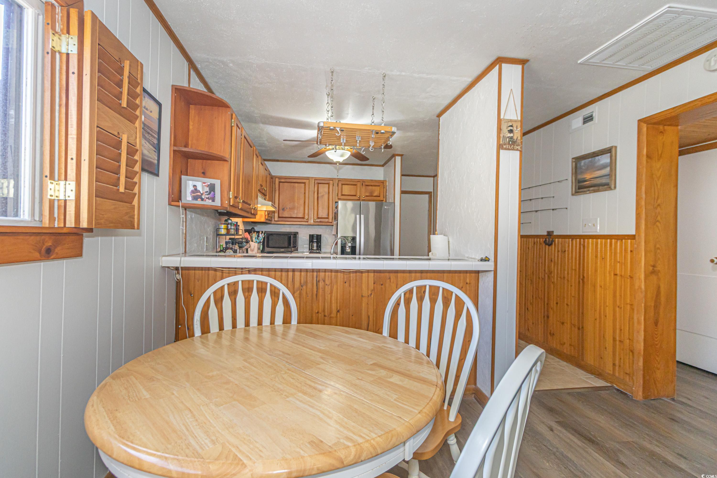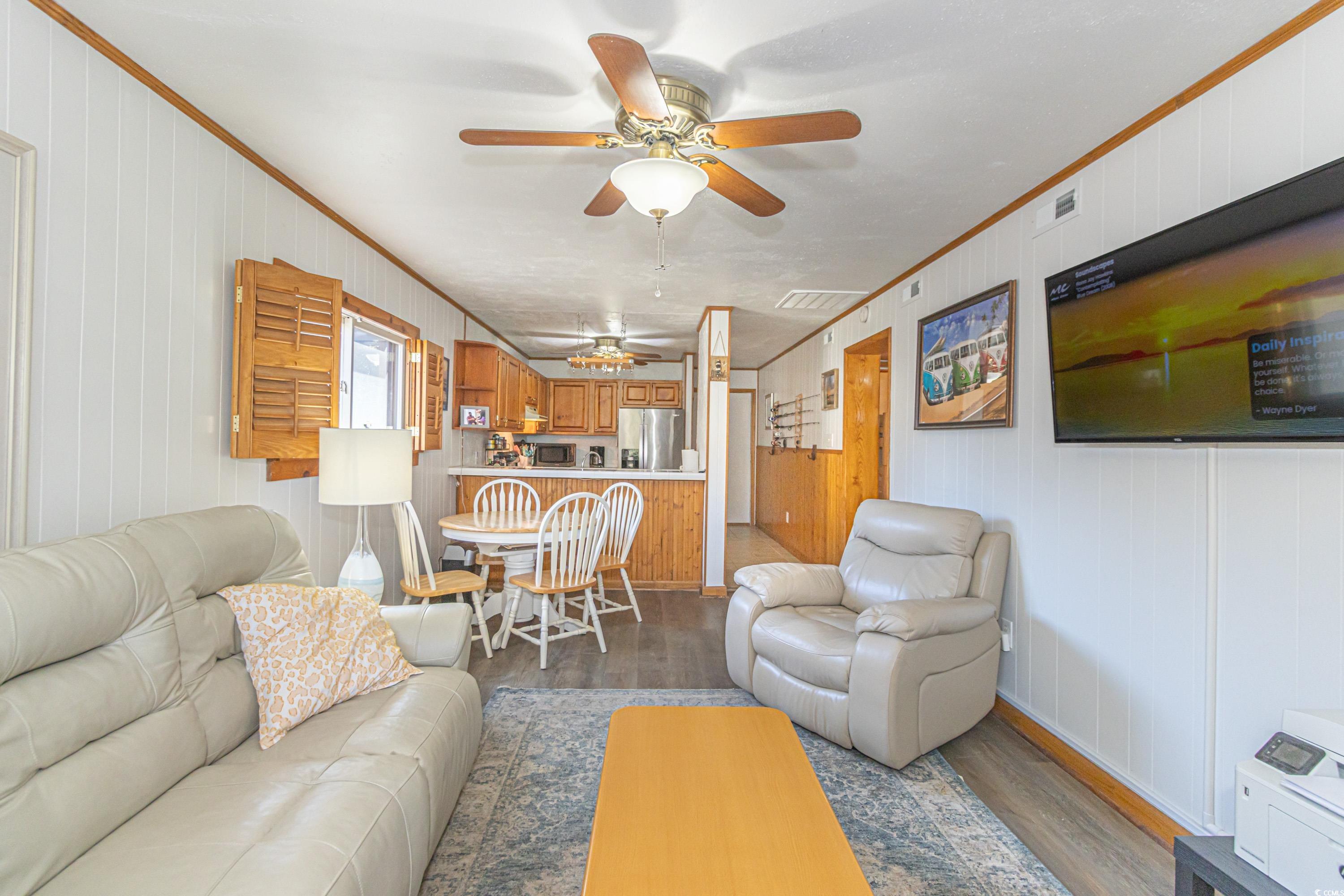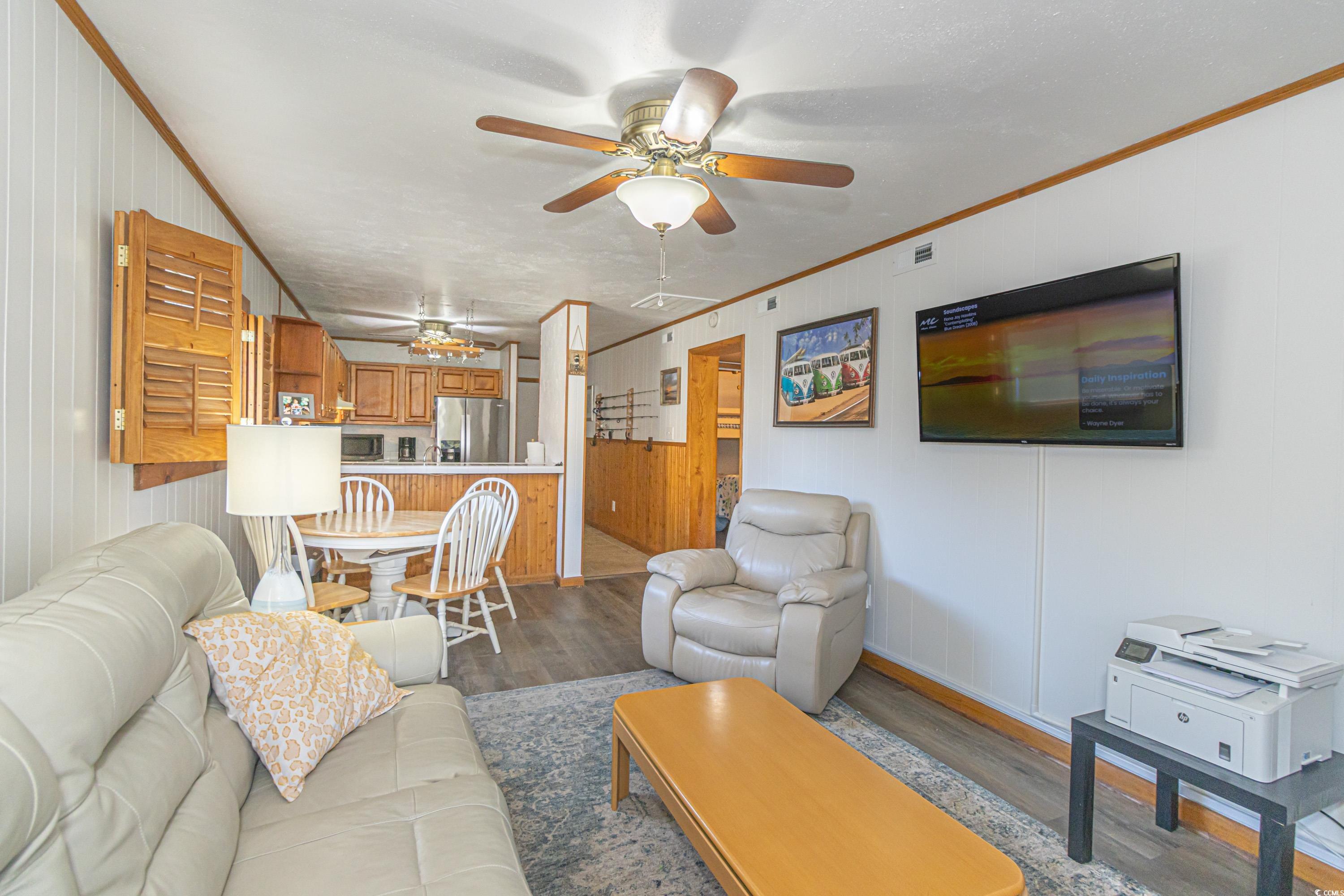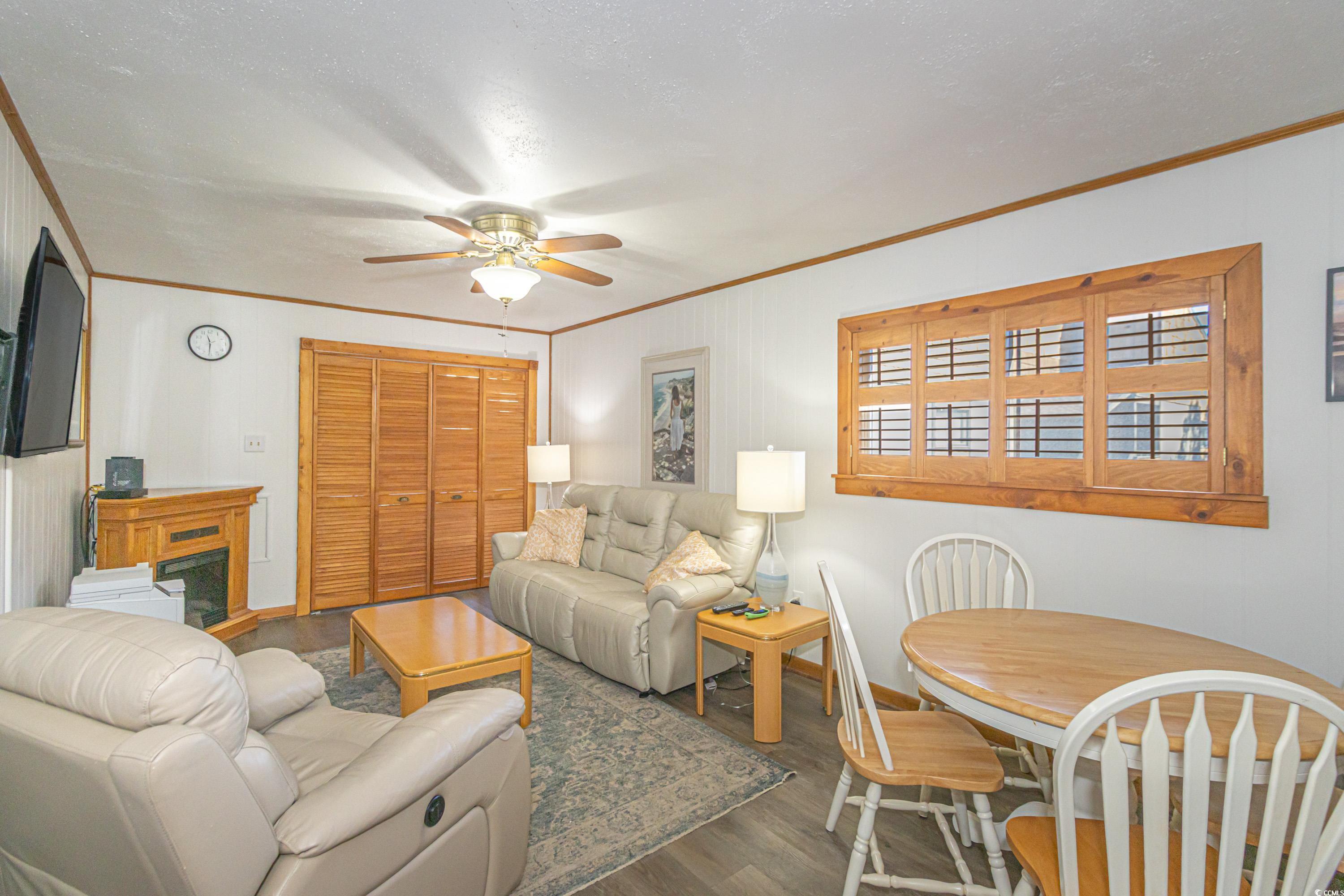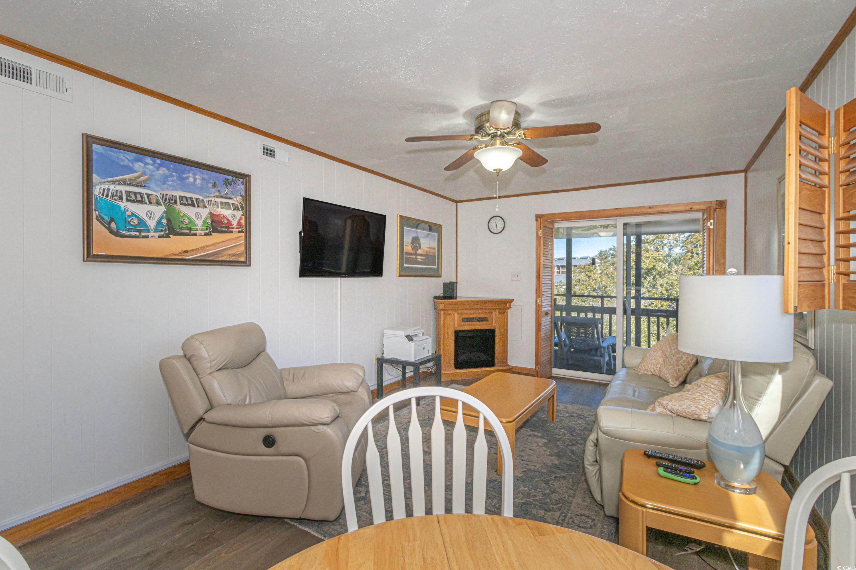 Welcome to this Beach condo, a golfers retreat in Mariners Cove in the highly sought-after Arcadian Shores area. This quaint 2 BR 2 BA corner unit with cedar wood plantation shutters and cedar wood wall accents & extra windows give this condo incredible light, Main Suite offers a king size Sleep Number bed, full size washer and dryer, fully equipped kitchen and appliances, eating area, electric fireplace, reclining leather sofa and Chair, Nags Head Hammock furniture on screened in porch overlooking the Marsh & Dunes Club Golf Course where the PGA Golf Tournament is held, 2nd BR has This End Up solid wood bunk beds & a single bed. All furnishings convey with sale including, pictures, chairs, surfboard decor & fishing poles. Remote Thermostat. The HVAC including Air Handler were replaced with a RUDD high efficiency system in June 2020, water heater replaced February 2022, and LVP Flooring installed in 2021, The main bath walk in shower was installed December 2024, Roof replaced in 2023. The condo also conveys with Hurricane Shutters for each patio door to deck. Mariners' Cove amenities include outdoor pool, BBQ area & a club house. Short walk to the beach, Ocean Annie's Beach Bar, Entertainment, Tangier outlet shopping, Barefoot Landing, restaurants, and Golf. Motivated Seller relocating. Make this quaint condo your Beach Getaway, 2nd home or investment property just in time for the 2025 Peak season.